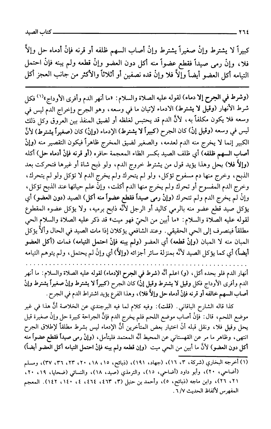 وشرط في الجرح الإدماء لقوله عليه الصلاة والسلام ما أنهر الدم وأفرى الأوداج فكل شرط الإنهار وقيل لا يشترط الإدماء لإتيان ما في وسعه وهو الجرح وإخراج الدم ليس في وسعه فلا يكون مكلفا به لأن الدم قد يحتبس لغلظه أو لضيق المنفذ بين العروق وكل ذلك ليس في وسعه وقيل إن كان الجرح كبيرا لا يشترط الإدماء