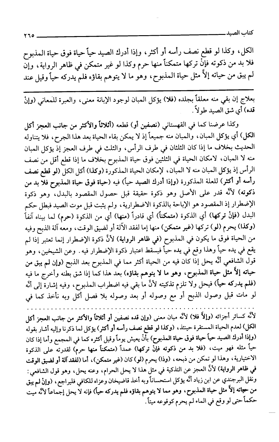 وكذا يحرم لو تركها غير متمكن منها إما لفقد الآلة أو لضيق الوقت ومعه آلة الذبح وفيه من الحياة فوق ما يكون في المذبوح في ظاهر الرواية لأن ذكوة الاضطرار إنما تعتبر إذا لم يقع في يده حيا وهذا وقع في يده حيا فيسقط اعتبار ذكوة الاضطرار فيه وعن الشيخين وهو قول الشافعي أنه يحل إذا كان فيه من الحياة أكثر مما في المذبوح بعد الذبح