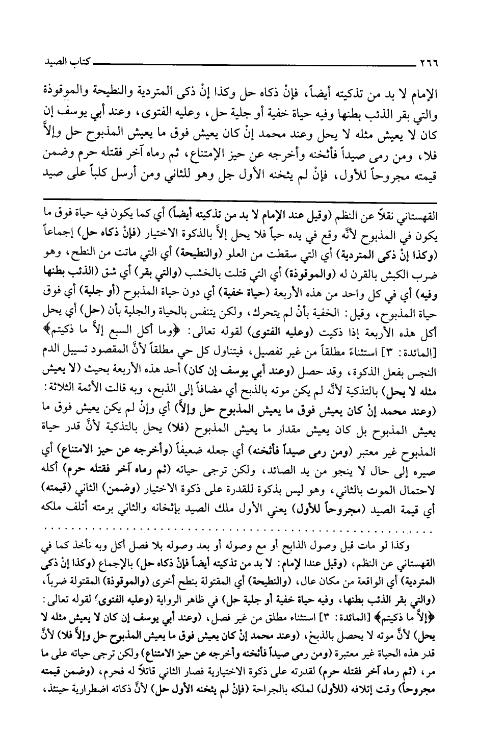 القهستاني نقلا عن النظم وقيل عند الإمام لا بد من تذكيته أيضا أي كما يكون فيه حياة فوق ما يكون في المذبوح لأنه وقع في يده حيا فلا يحل إلا بالذكوة الاختيار فإن ذكاه حل إجماعا