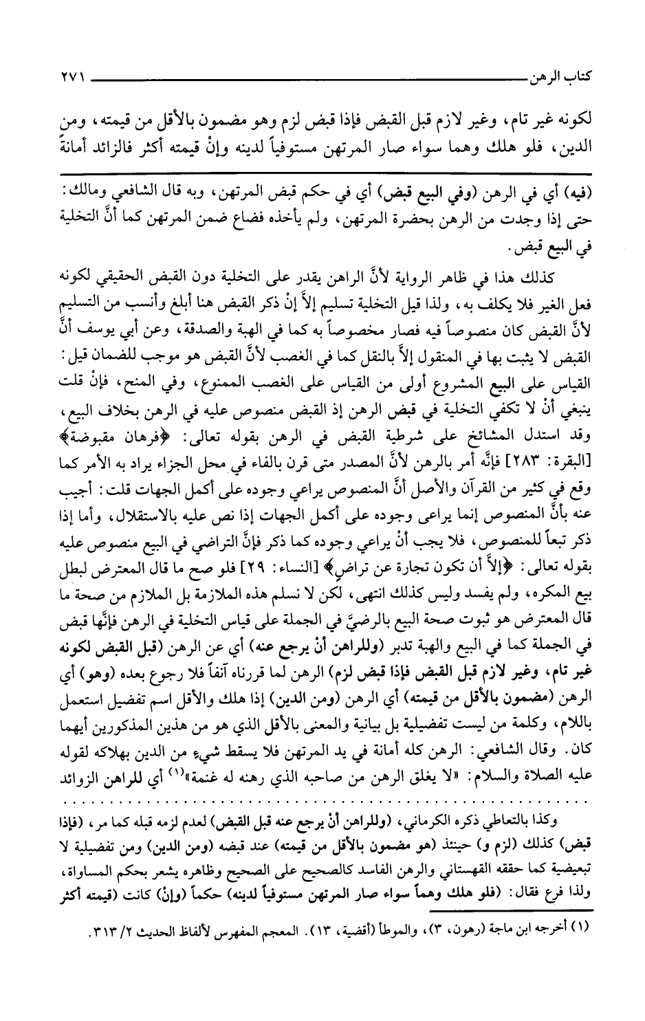 وفي المنح فإن قلت ينبغي أن لا تكفي التخلية في قبض الرهن إذا القبض منصوص عليه في الرهن بخلاف البيع وقد استدل المشايخ على شرطية القبض في الرهن بقوله تعالى فرهان مقبوضة فإنه أمر بالرهن لأن المصدر متى قرن بالفاء في محل الجزاء يراد به الأمر كما وقع في كثير من القرآن والأصل أن المنصوص يراعى وجوده على أكمل الجهات قلت أجيب عنه بأن المنصوص إنما يراعى وجوده على أكمل الجهات إذا نص عليه بالاستقلال وأما إذا ذكر تبعا للمنصوص فلا يجب أن يراعى وجوده كما ذكر فإن التراضي في البيع منصوص عليه بقوله تعالى إلا أن تكون تجارة عن تراض فلو صح ما قال المعترض لبطل بيع المكره ولم يفسد وليس كذلك انتهى لكن لا نسلم هذه الملازمة بل الملازم من صحة ما قال المعترض هو ثبوت صحة البيع بالرضى في الجملة على قياس التخلية في الرهن فإنها قبض في الجملة كما في البيع والهبة تدبر