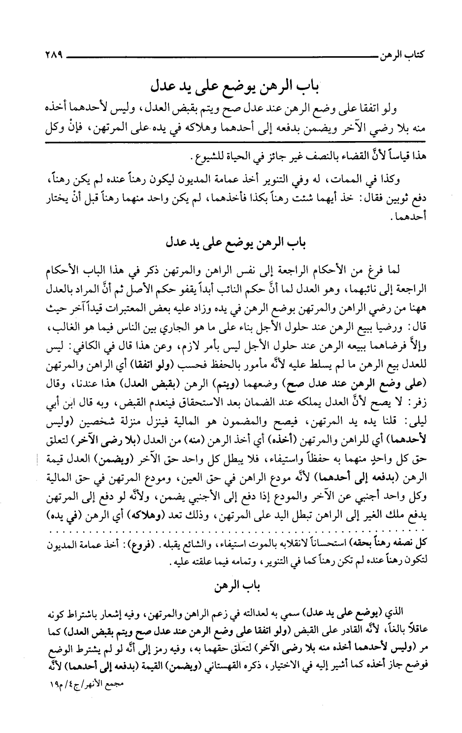 باب الرهن يوضع عند عدل