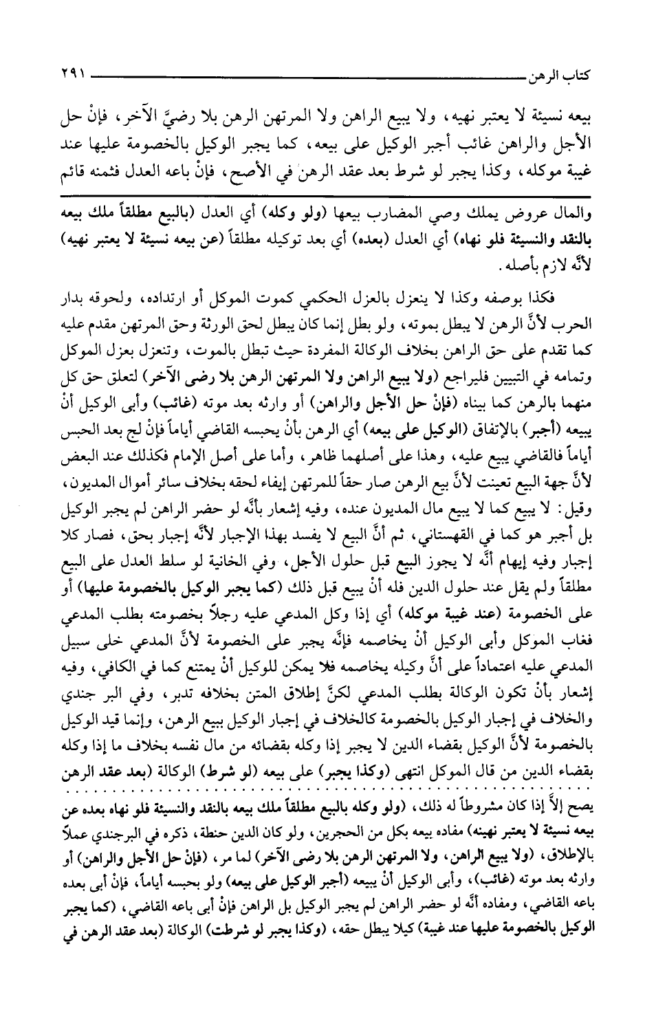ولو وكله أي العدل بالبيع مطلقا ملك بيعه بالنقد والنسيئة فلو نهاه أي العدل بعده أي بعد توكيله مطلقا عن بيعه نسيئة لا يعتبر نهيه لأنه لازم بأصله فكذا بوصفه وكذا لا ينعزل بالعزل الحكمي كموت الموكل أو ارتداده ولحوقه بدار الحرب لأن الرهن لا يبطل بموته ولو بطل إنما كان يبطل لحق الورثة وحق المرتهن مقدم عليه كما تقدم على حق الراهن بخلاف الوكالة المفردة حيث تبطل بالموت وتنعزل بعزل الموكل وتمامه في التبيين فليراجع