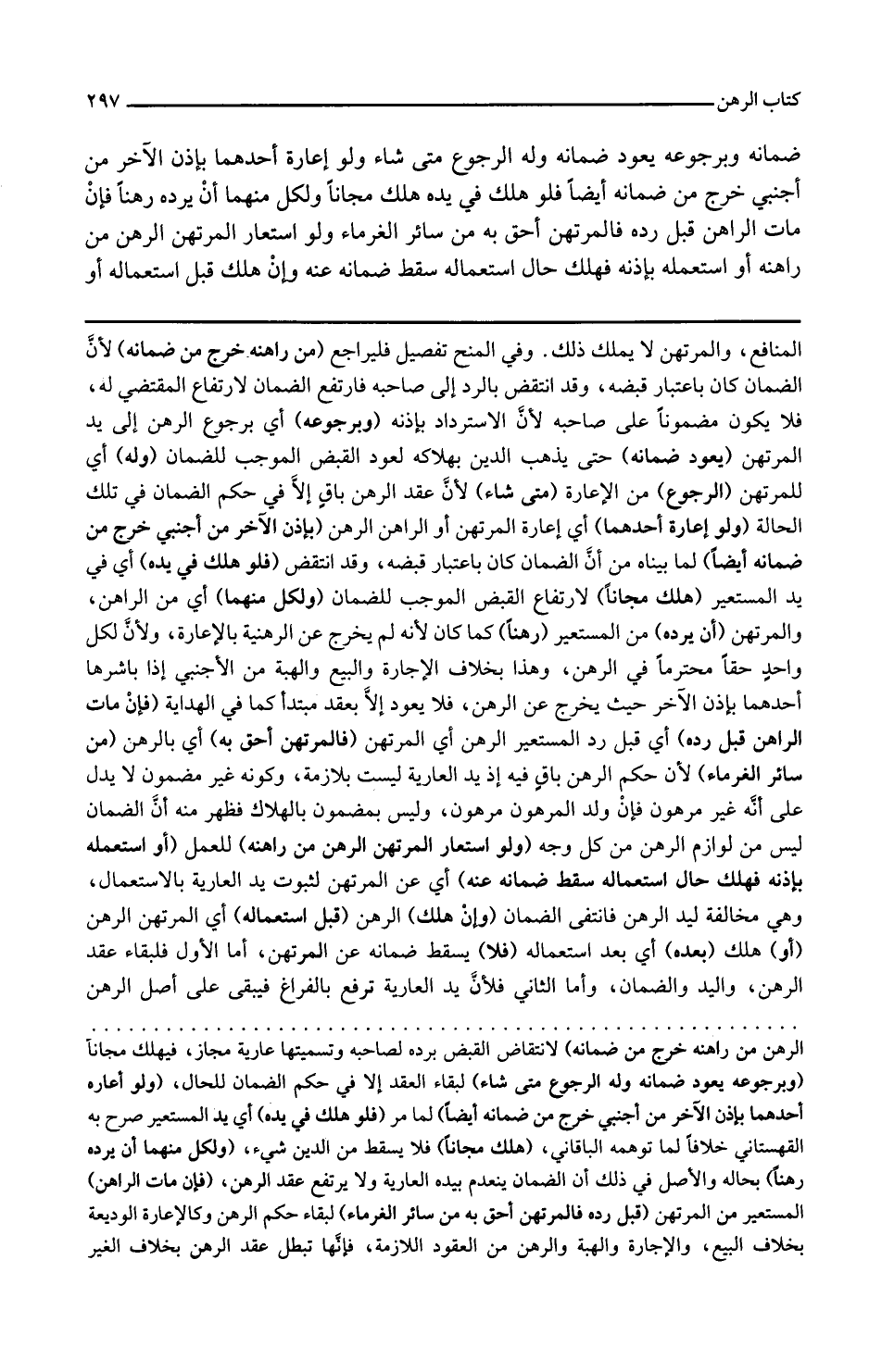 ولو استعار المرتهن الرهن من راهنه للعمل أو استعماله بإذنه فهلك حال استعماله سقط ضمانه عنه أي عن المرتهن لثبوت يد العارية بالاستعمال وهي مخالفة ليد الرهن فانتفى الضمان