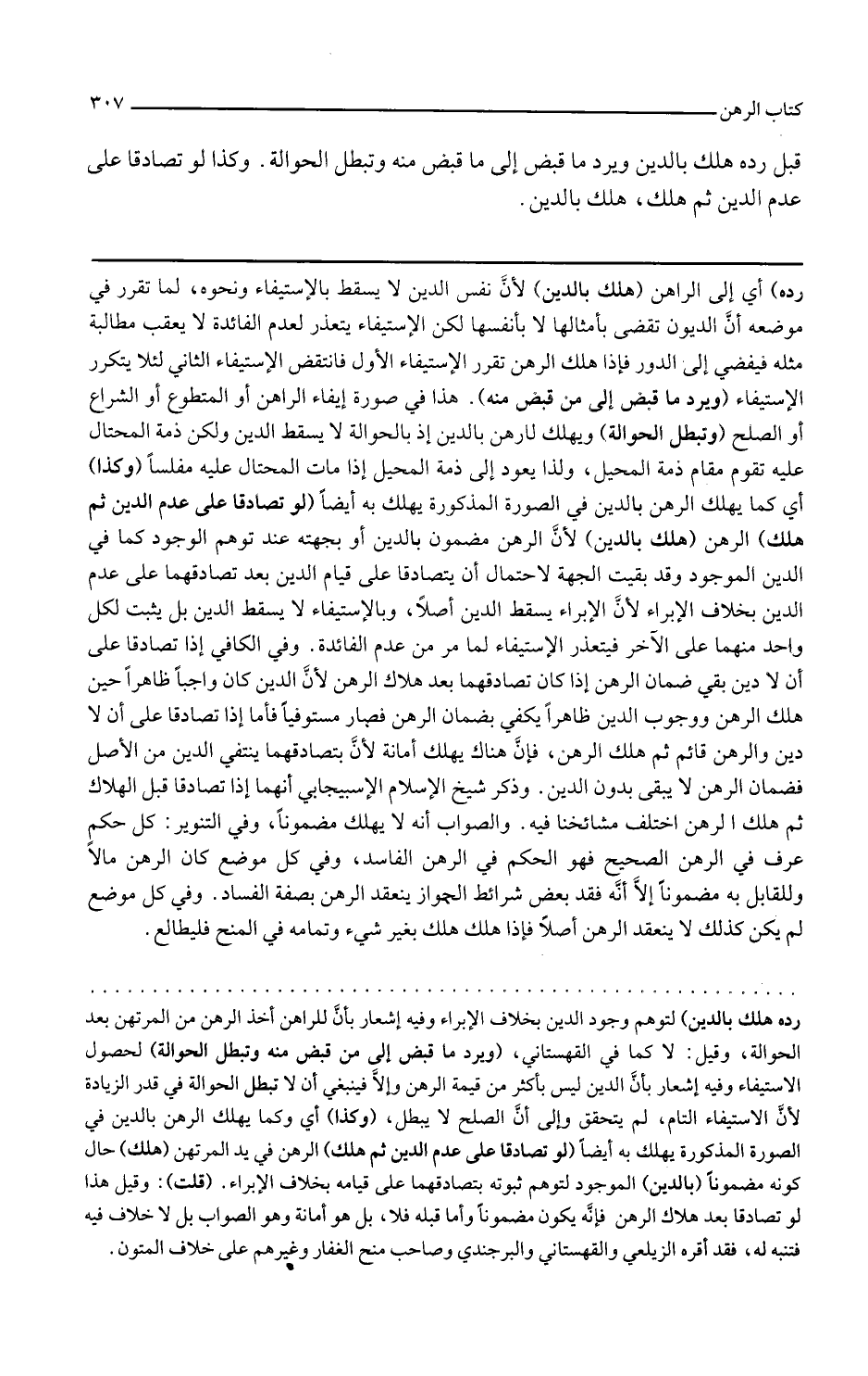 وتبطل الحوالة ويهلك الرهن بالدين إذ بالحوالة لا يسقط الدين ولكن ذمة المحتال عليه تقوم مقام ذمة المحيل ولذا يعود إلى ذمة المحيل إذا مات المحتال عليه مفلسا