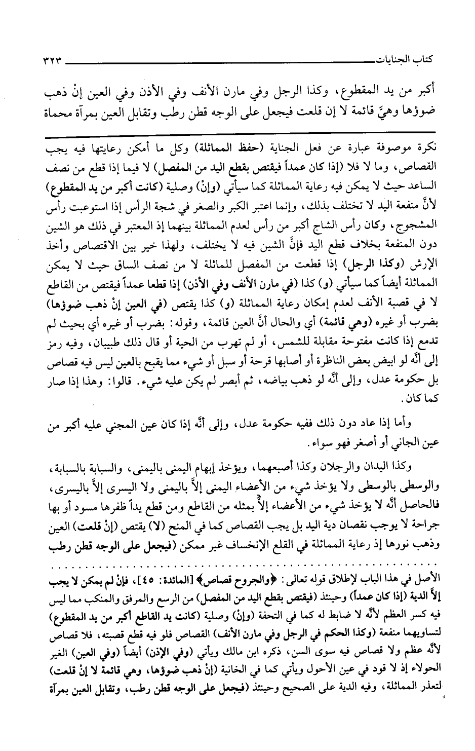 نكرة موصوفة عبارة عن فعل الجناية حفظ المماثلة وكل ما أمكن رعايتها فيه يجب القصاص وما لا فلا إذا كان عمدا فيقتص بقطع اليد من المفصل لا فيما إذا قطع من نصف الساعد حيث لا يمكن فيه رعاية المماثلة كما سيأتي