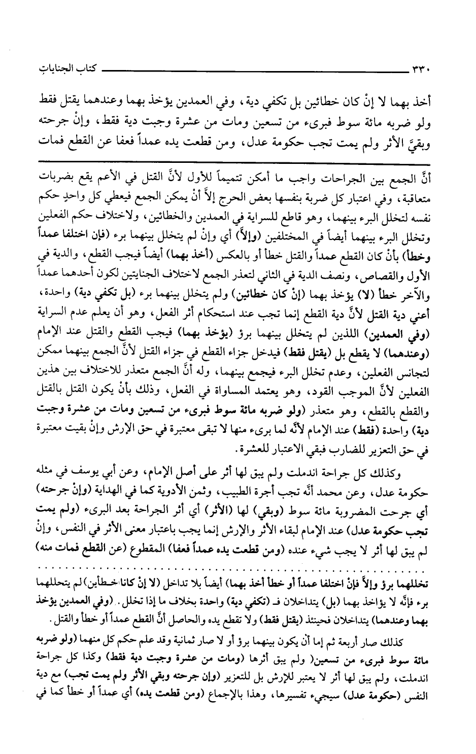 أن الجمع بين الجراحات واجب ما أمكن تتميما للأول لأن القتل في الأعم يقع بضربات متعاقبة وفي اعتبار كل ضربة بنفسها بعض الحرج إلا أن يمكن الجمع فيعطى كل واحد حكم نفسه لتخلل البرء بينهما وهو قاطع للسراية في العمدين والخطأين ولاختلاف حكم الفعلين وتخلل البرء بينهما أيضا في المختلفين وإلا أي وإن لم يتخلل بينهما برء فإن اختلفا عمدا وخطأ بأن كان القطع عمدا والقتل خطأ أو بالعكس أخذ بهما أيضا فيجب القطع والدية في الأول والقصاص ونصف الدية في الثاني لتعذر الجمع لاختلاف الجنايتين لكون أحدهما عمدا والآخر خطأ لا يؤخذ بهما إن كان خطأين ولم يتخلل بينهما برء بل تكفي دية واحدة