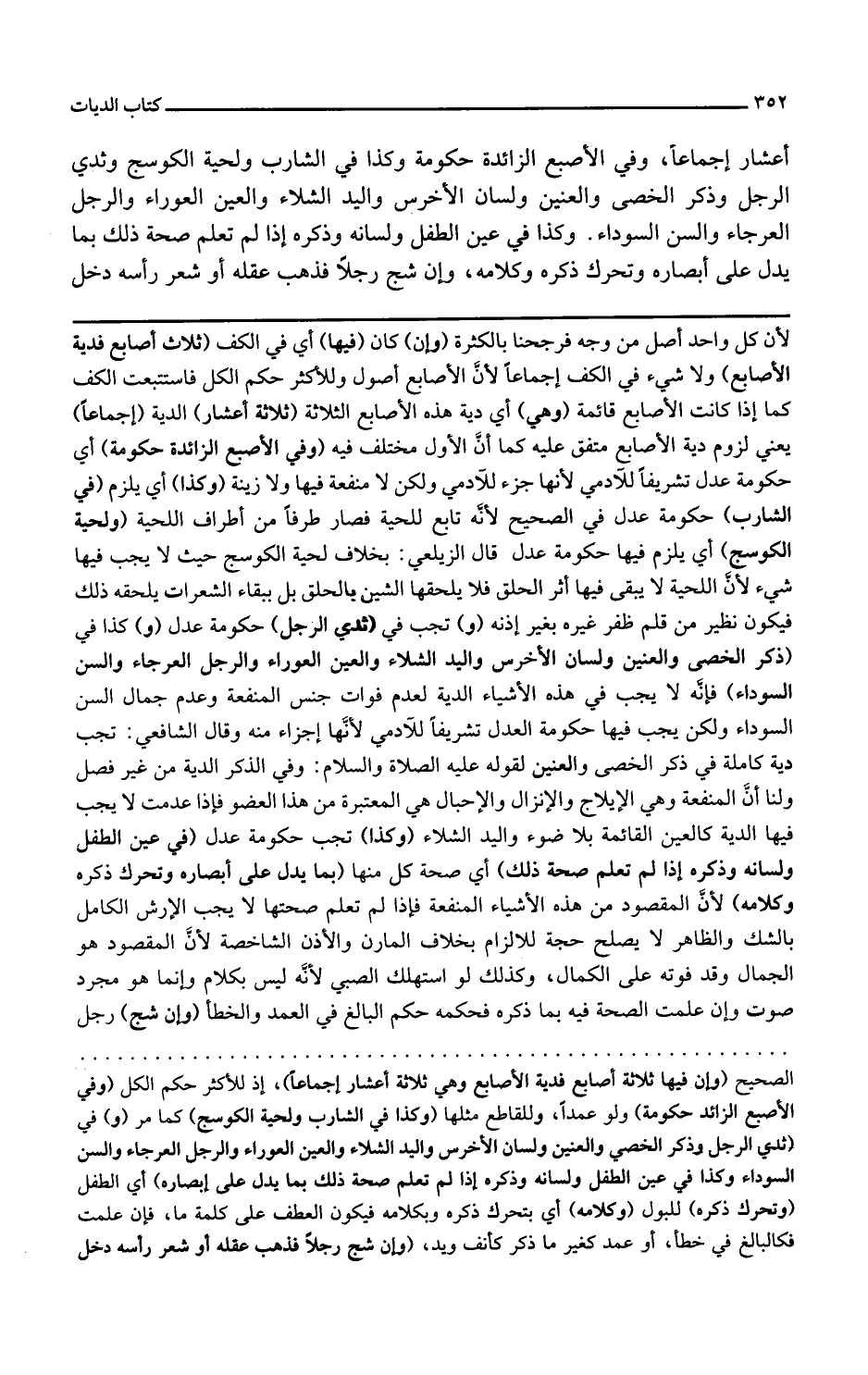 لأن كل واحد أصل من وجه فرجحنا بالكثرة وإن كان فيها أي في الكف ثلاث أصابع فدية الأصابع ولا شيء في الكف إجماعا لأن الأصابع أصول وللأكثر حكم الكل فاستتبعت الكف كما إذا كانت الأصابع قائمة وهي أي دية هذه الأصابع الثلاثة ثلاثة أعشار الدية إجماعا يعني لزوم دية الأصابع متفق عليه كما أن الأول مختلف فيه