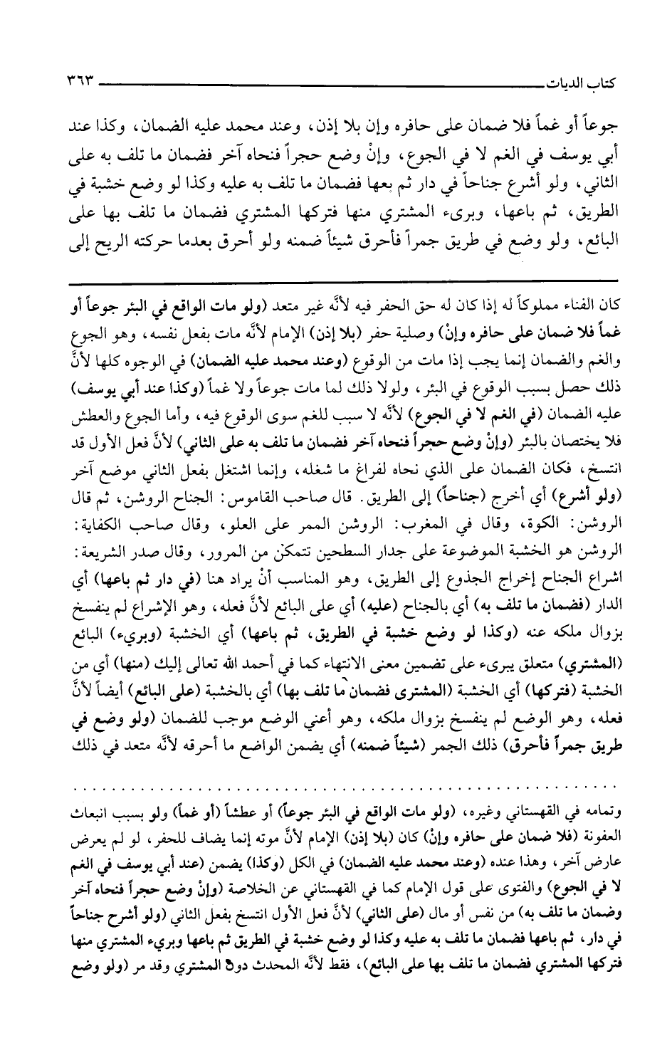 وقال صدر الشريعة أشراع الجناح إخراج الجذوع إلى الطريق وهو المناسب إن يراد هنا في دار ثم باعها أي الدار فضمان ما تلف به أي بالجناح عليه أي على البائع لأن فعله وهو الإشراع لم ينفسخ بزوال ملكه عنه