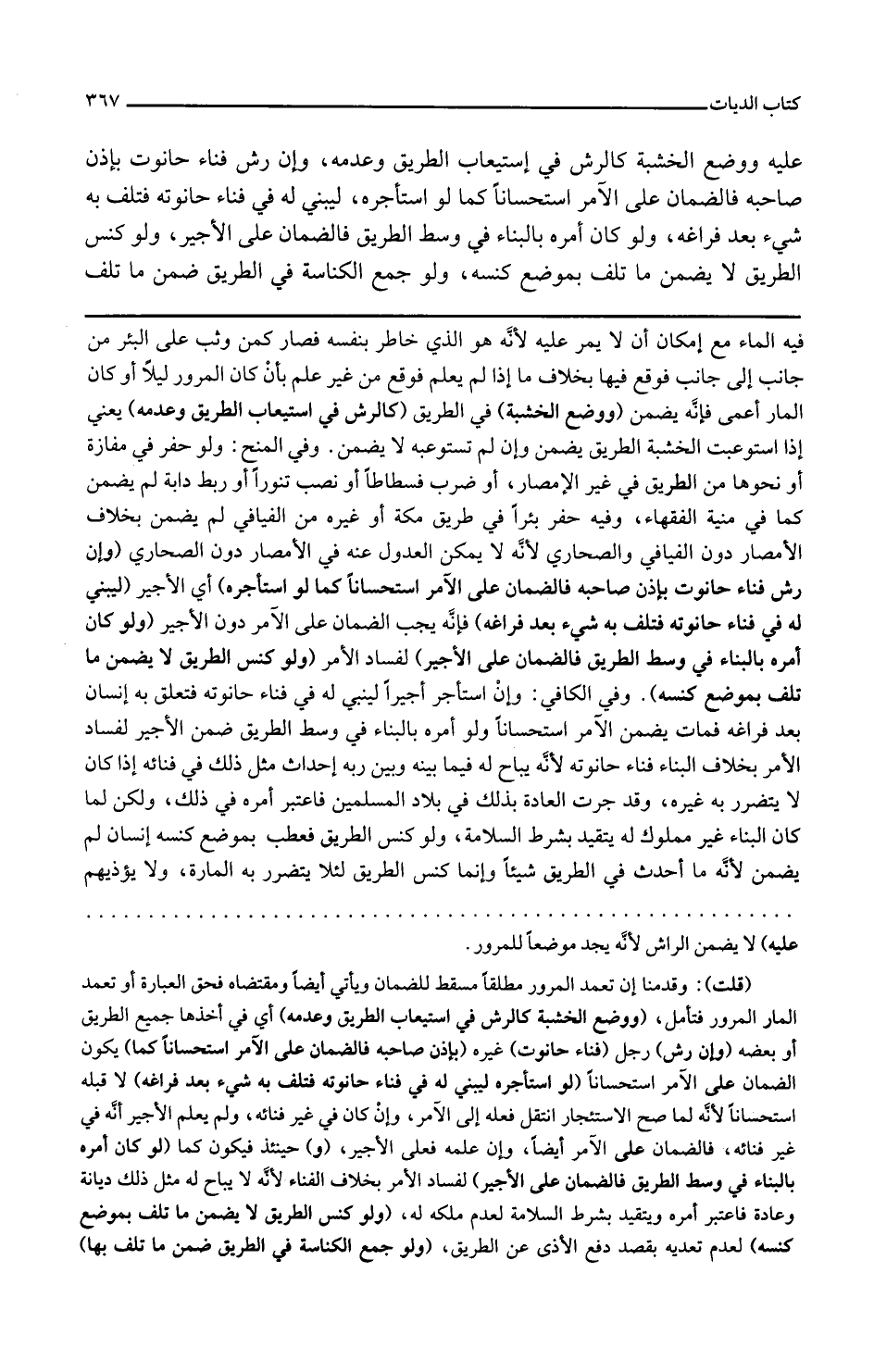 ووضع الخشبة في الطريق كالرش في استيعاب الطريق وعدمه يعني إذا استوعبت الخشبة الطريق يضمن وإن لم تستوعبه لا يضمن