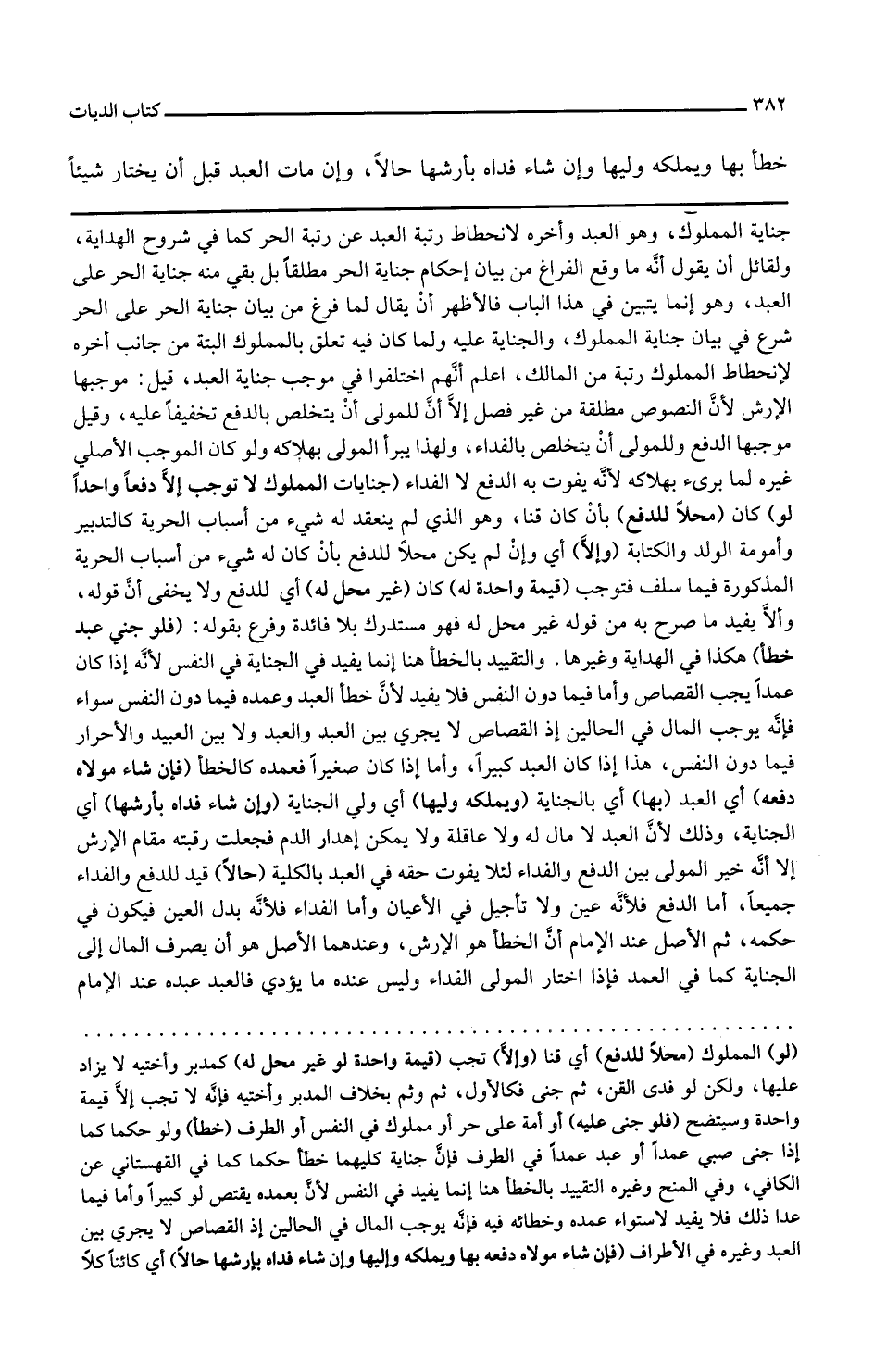 جناية المملوك وهو العبد وأخره لانحطاط رتبة العبد عن رتبة الحر كما في شروح الهداية ولقائل أن يقول إنه ما وقع الفراغ من بيان أحكام جناية الحر مطلقا بل بقي منه جناية الحر على العبد وهو إنما يتبين في هذا الباب فالأظهر أن يقال لما فرغ من بيان جناية الحر على الحر شرع في بيان جناية المملوك والجناية عليه ولما كان فيه تعلق بالمملوك ألبتة من جانب أخره لانحطاط المملوك رتبة من المالك اعلم أنهم اختلفوا في موجب جناية العبد قيل موجبها الأرش لأن النصوص مطلقة من غير فصل إلا أن للمولى أن يتخلص بالدفع تخفيفا عليه وقيل موجبها الدفع وللمولى أن يتخلص بالفداء ولهذا يبرأ المولى بهلاكه ولو كان الموجب الأصلي غيره لما برئ بهلاكه لأنه يفوت به الدفع لا الفداء جنايات المملوك لا توجب إلا دفعا واحدا لو كان محلا للدفع بأن كان قنا وهو الذي لم ينعقد له شيء من أسباب الحرية كالتدبير وأمومة الولد والكتابة وإلا أي وإن لم يكن محلا للدفع بأن كان له شيء من أسباب الحرية المذكورة فيما سلف فتوجب قيمة واحدة لو كان غير محل له أي للدفع ولا يخفى أن قوله وإلا يفيد ما صرح به من قوله غير محل له فهو مستدرك بلا فائدة وفرع بقوله