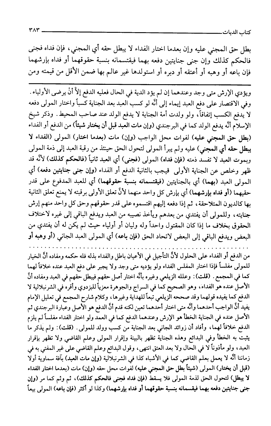 وإن مات بعدما اختار المولى الفداء لا يبطل حقه أي المجني عليه ولم يبرأ المولى لتحول الحق حينئذ من رقبة العبد إلى ذمة المولى وبموت العبد لا تفسد ذمته فإن فداه المولى فجنى أي العبد ثانيا فالحكم كذلك لأنه قد ظهر وخلص عن الجناية الأولى فيجب بالثانية الدفع أو الفداء وإن جنى جنايتين دفعه أي المولى العبد بهما أي بالجنايتين فيقتسمانه بنسبة حقوقهما أي للعبد المدفوع على قدر حقيهما أو فداه بأرشهما أي بأرش كل واحد منهما لأن تعلق الأولى برقبته لا يمنع تعلق الثانية بها كالديون المتلاحقة ثم إذا دفعه إليهم اقتسموه على قدر حقوقهم وحق كل واحد منهم أرش جنايته وللمولى أن يفتدي من بعدهم ويأخذ نصيبه من العبد ويدفع الباقي إلى غيره لاختلاف الحقوق بخلاف ما إذا كان المقتول واحدا وله وليان أو أولياء حيث لم يكن له أن يفتدي من البعض ويدفع الباقي إلى البعض لاتحاد الحق