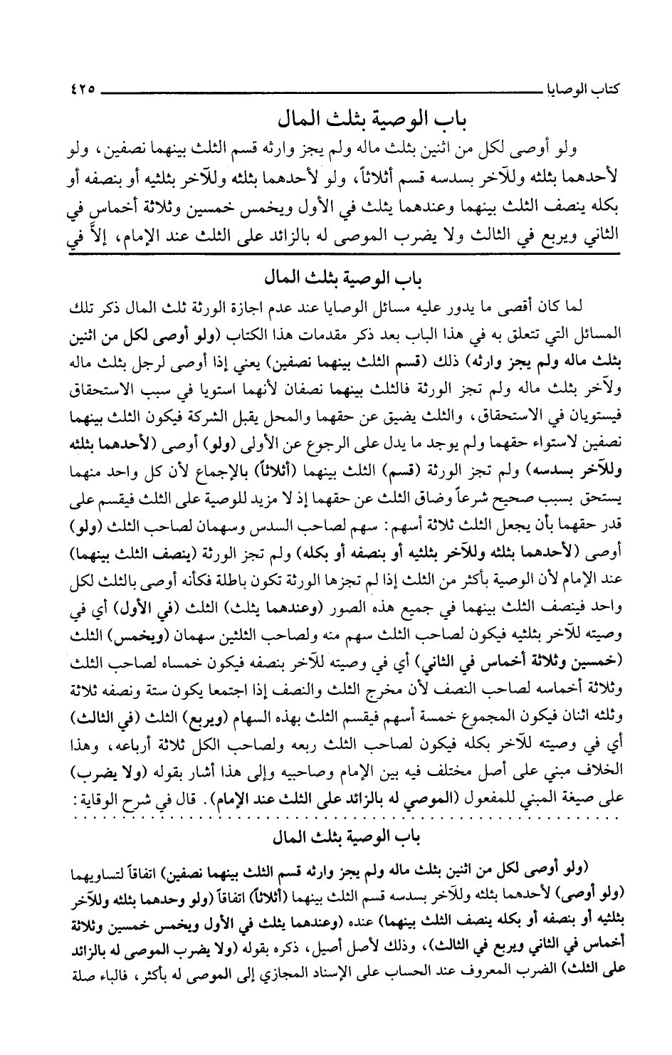 لما كان أقصى ما يدور عليه مسائل الوصايا عند عدم إجازة الورثة ثلث المال ذكر تلك المسائل التي تتعلق به في هذا الباب بعد ذكر مقدمات هذا الكتاب