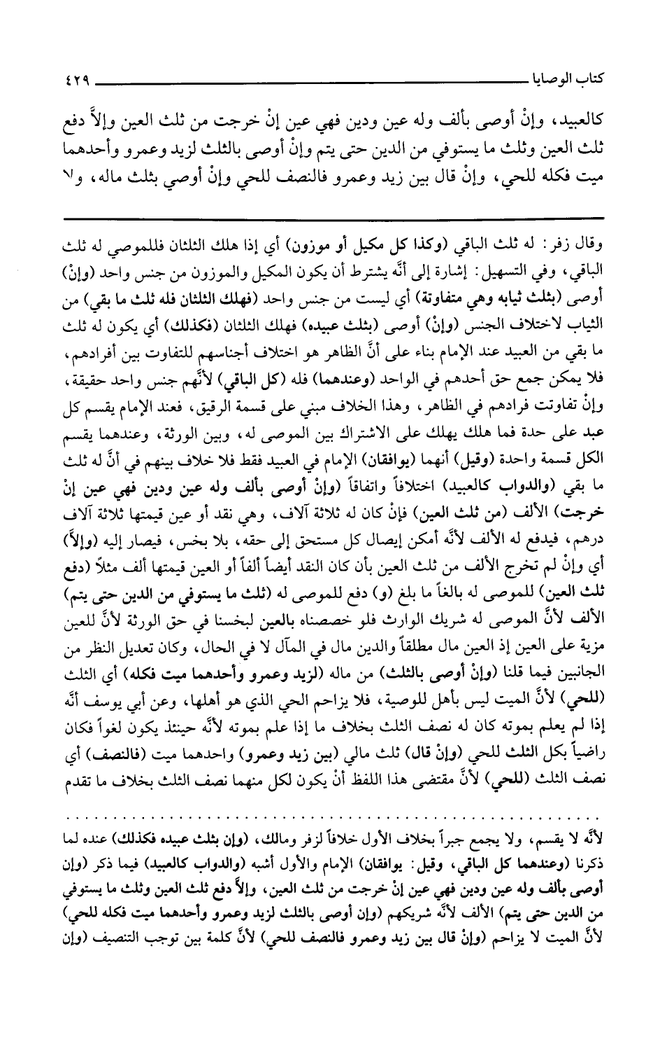 وقال زفر له ثلث الباقي وكذا كل مكيل أو موزون أي إذا هلك الثلثان فللموصى له ثلث الباقي