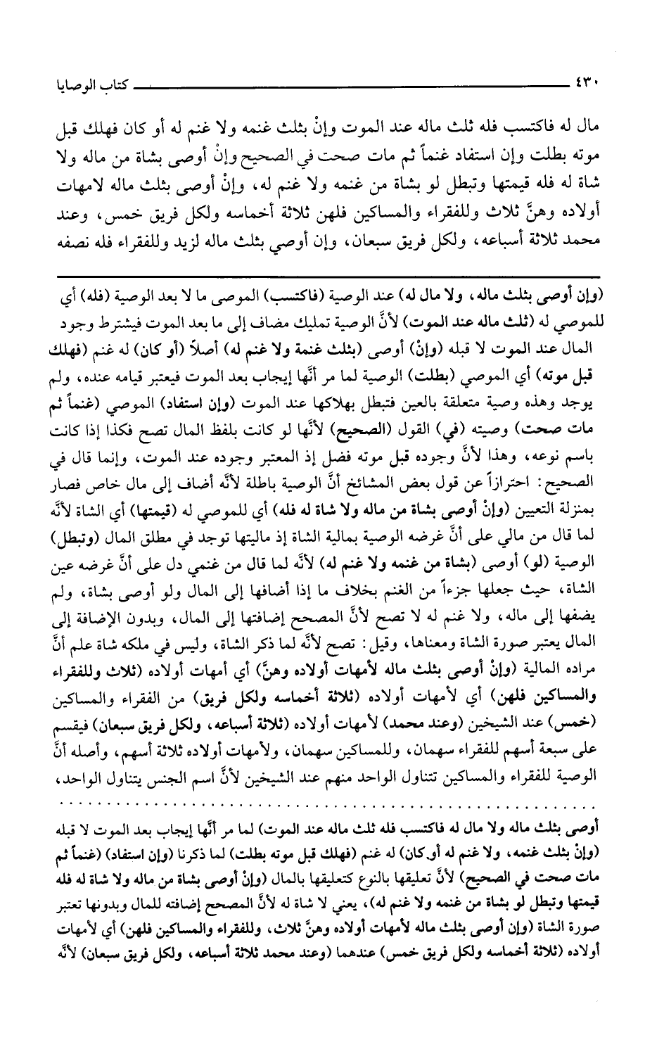 وتبطل الوصية لو أوصى بشاة من غنمه ولا غنم له لأنه لما قال من غنمي دل على أن غرضه عين الشاة حيث جعلها جزءا من الغنم بخلاف ما إذا أضافها إلى المال ولو أوصى بشاة ولم يضفها إلى ماله ولا غنم له لا تصح لأن المصحح إضافتها إلى المال وبدون الإضافة إلى المال يعتبر صورة الشاة ومعناها وقيل تصح لأنه لما ذكر الشاة وليس في ملكه شاة علم أن مراده المالية