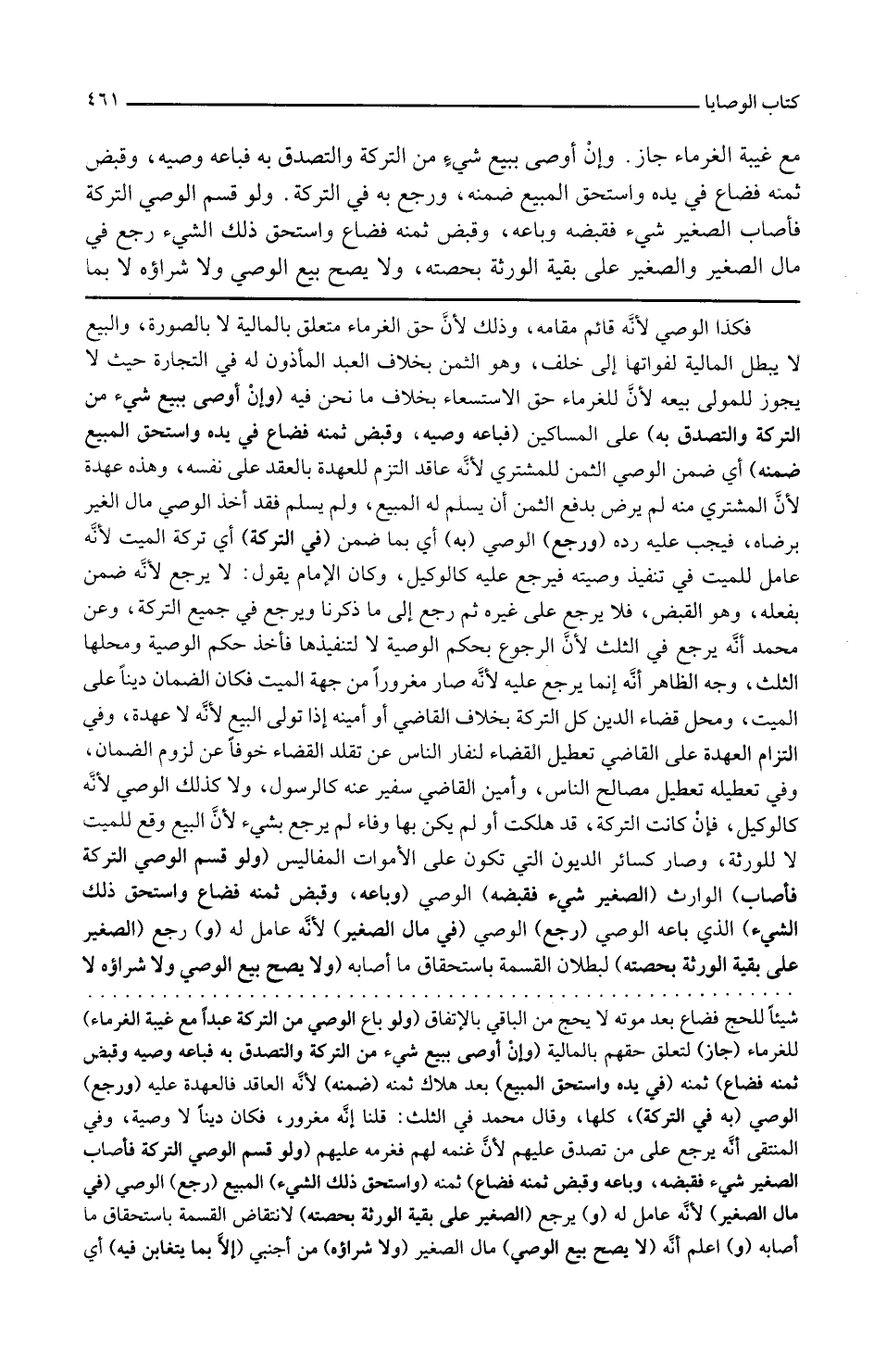 وإن أوصى ببيع شيء من التركة والتصدق به على المساكين فباعه وصيه وقبض ثمنه فضاع في يده واستحق المبيع ضمنه أي ضمن الوصي الثمن للمشتري لأنه عاقد التزم للعهدة بالعقد على نفسه وهذه عهدة لأن المشتري منه لم يرض بدفع الثمن أن يسلم له المبيع ولم يسلم فقد أخذ الوصي مال الغير برضاه فيجب عليه رده ورجع الوصي به أي بما ضمن في التركة أي تركة الميت لأنه عامل للميت في تنفيذ وصيته فيرجع عليه كالوكيل وكان الإمام يقول لا يرجع لأنه ضمن بفعله وهو القبض فلا يرجع على غيره ثم رجع إلى ما ذكرنا ويرجع في جميع التركة وعن محمد أنه يرجع في الثلث لأن الرجوع بحكم الوصية لا لتنفيذها فأخذ حكم الوصية ومحلها الثلث وجه الظاهر أنه إنما يرجع عليه لأنه صار مغرورا من جهة الميت فكان الضمان دينا على الميت ومحل قضاء الدين كل التركة بخلاف القاضي أو أمينه إذا تولى البيع لأنه لا عهدة وفي التزام العهدة على القاضي تعطيل القضاء لنفار الناس عن تقلد القضاء خوفا عن لزوم الضمان وفي تعطيله تعطيل مصالح الناس وأمين القاضي سفير عنه كالرسول ولا كذلك الوصي لأنه كالوكيل فإن كانت التركة قد هلكت أو لم يكن بها وفاء لم يرجع بشيء لأن البيع وقع للميت لا للورثة وصار كسائر الديون التي تكون على الأموات المفاليس