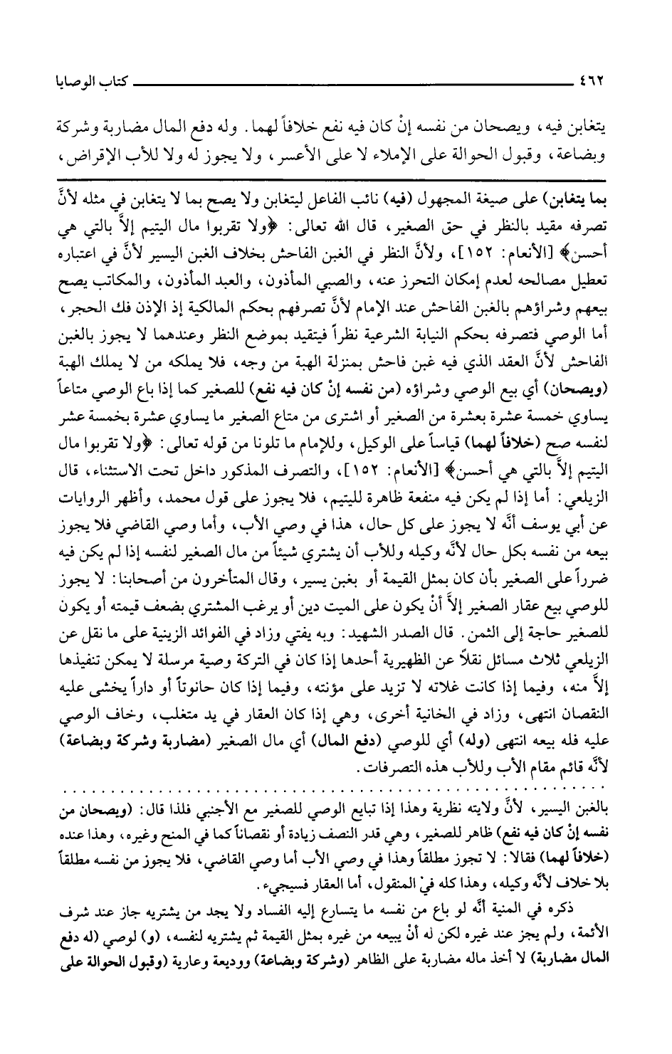 بما يتغابن على صيغة المجهول فيه نائب الفاعل ليتغابن ولا يصح بما لا يتغابن في مثله لأن تصرفه مقيد بالنظر في حق الصغير قال الله تعالى ولا تقربوا مال اليتيم إلا بالتي هي أحسن ولأن النظر في الغبن الفاحش بخلاف الغبن اليسير لأن في اعتباره تعطيل مصالحه لعدم إمكان التحرز عنه والصبي المأذون والعبد المأذون والمكاتب يصح بيعهم وشراؤهم بالغبن الفاحش عند الإمام لأن تصرفهم بحكم المالكية إذ الإذن فك الحجر أما الوصي فتصرفه بحكم النيابة الشرعية نظرا فيتقيد بموضع النظر وعندهما لا يجوز بالغبن الفاحش لأن العقد الذي فيه غبن فاحش بمنزلة الهبة من وجه فلا يملكه من لا يملك الهبة ويصحان أي بيع الوصي وشراؤه من نفسه إن كان فيه نفع للصغير كما إذا باع الوصي متاعا يساوي خمسة عشرة بعشرة من الصغير أو اشترى من متاع الصغير ما يساوي عشرة بخمسة عشر لنفسه صح خلافا لهما قياسا على الوكيل وللإمام ما تلونا من قوله تعالى ولا تقربوا مال اليتيم إلا بالتي هي أحسن والتصرف المذكور داخل تحت الاستثناء قال الزيلعي أما إذا لم يكن فيه منفعة ظاهرة لليتيم فلا يجوز على قول محمد وأظهر الروايات عن أبي يوسف أنه لا يجوز على كل حال هذا في وصي الأب وأما وصي القاضي فلا يجوز بيعه من نفسه بكل حال لأنه وكيله وللأب أن يشتري شيئا من مال الصغير لنفسه إذا لم يكن فيه ضرر على الصغير بأن كان بمثل القيمة أو بغبن يسير وقال المتأخرون من أصحابنا لا يجوز للوصي بيع عقار الصغير إلا أن يكون على الميت دين أو يرغب المشتري بضعف قيمته أو يكون للصغير حاجة إلى الثمن قال الصدر الشهيد وبه يفتى وزاد في الفوائد الزينية على ما نقل عن الزيلعي ثلاث مسائل نقلا عن الظهيرية أحدها إذا كان في التركة وصية مرسلة لا يمكن تنفيذها إلا منه وفيما إذا كانت غلاته لا تزيد على مؤنته وفيما إذا كان حانوتا أو دارا يخشى عليه النقصان انتهى وزاد في الخانية أخرى وهي إذا كان العقار في يد متغلب وخاف الوصي عليه فله بيعه انتهى