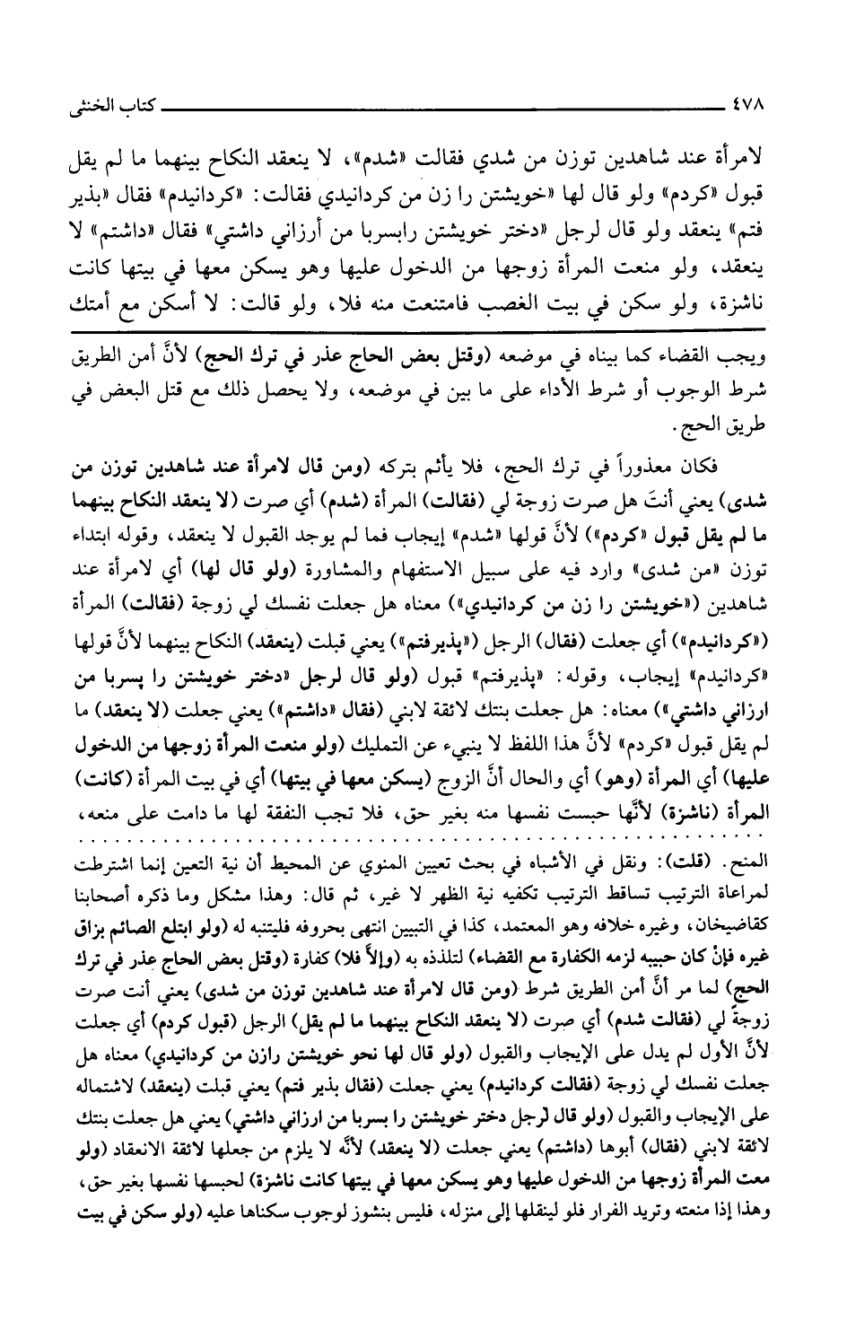ومن قال لامرأة عند شاهدين توزن من شدي يعني أنت هل صرت زوجة لي فقالت المرأة شدم أي صرت لا ينعقد النكاح بينهما ما لم يقل قبول كردم لأن قولها شدم إيجاب فما لم يوجد القبول لا ينعقد وقوله ابتداء توزن من شدي وارد فيه على سبيل الاستفهام والمشاورة