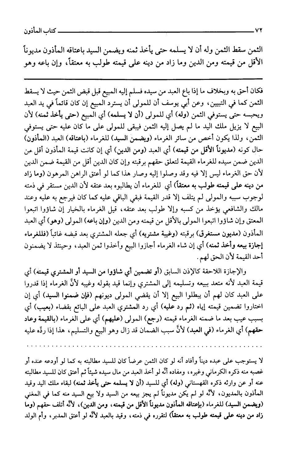 فكان أحق به وبخلاف ما إذا باع العبد من سيده فسلم إليه المبيع قبل قبض الثمن حيث لا يسقط الثمن كما في التبيين وعن أبي يوسف أن للمولى أن يسترد المبيع إن كان قائما في يد العبد ويحبسه حتى يستوفي الثمن وله أي للمولى أن لا يسلمه أي المبيع حتى يأخذ ثمنه لأن البيع لا يزيل ملك اليد ما لم يصل إليه الثمن فيبقى للمولى على ما كان عليه حتى يستوفي الثمن ولذا يكون أخص من سائر الغرماء ويضمن السيد للغرماء بإعتاقه العبد المأذون حال كونه مديونا الأقل من قيمته أي العبد ومن الدين أي إن كانت قيمة المأذون أقل من الدين ضمن سيده للغرماء القيمة لتعلق حقهم برقبته وإن كان الدين أقل من القيمة ضمن الدين لأن حق الغرماء ليس إلا فيه وقد وصلوا إليه وصار هذا كما لو أعتق الراهن المرهون وما زاد من دينه على قيمته طولب به معتقا أي للغرماء أن يطالبوه بعد عتقه لأن الدين مستقر في ذمته لوجوب سببه والمولى لم يتلف إلا قدر القيمة فبقي الباقي عليه كما كان فيرجع به عليه وعند مالك والشافعي يؤخذ من كسبه وإلا طولب بعد عتقه قيل الغرماء بالخيار إن شاءوا اتبعوا المعتق بالدين وإن شاءوا اتبعوا المولى بالأقل من قيمته ومن الدين