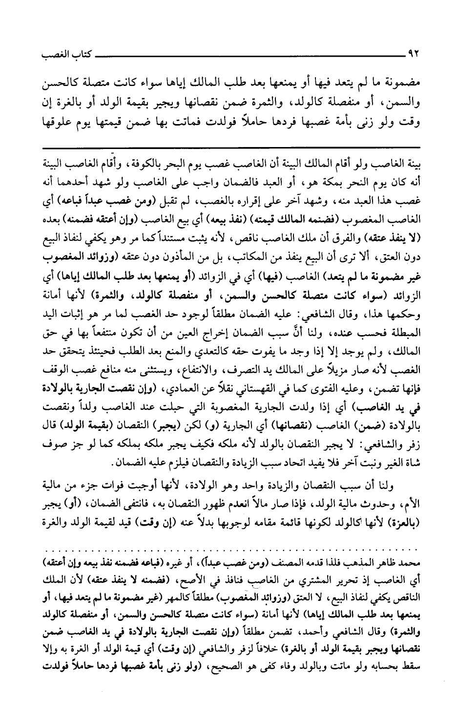 وزوائد المغصوب غير مضمونة ما لم يتعد الغاصب فيها أي في الزوائد أو يمنعها بعد طلب المالك إياها أي الزوائد سواء كانت متصلة كالحسن والسمن أو منفصلة كالولد والثمرة لأنها أمانة وحكمها هذا
