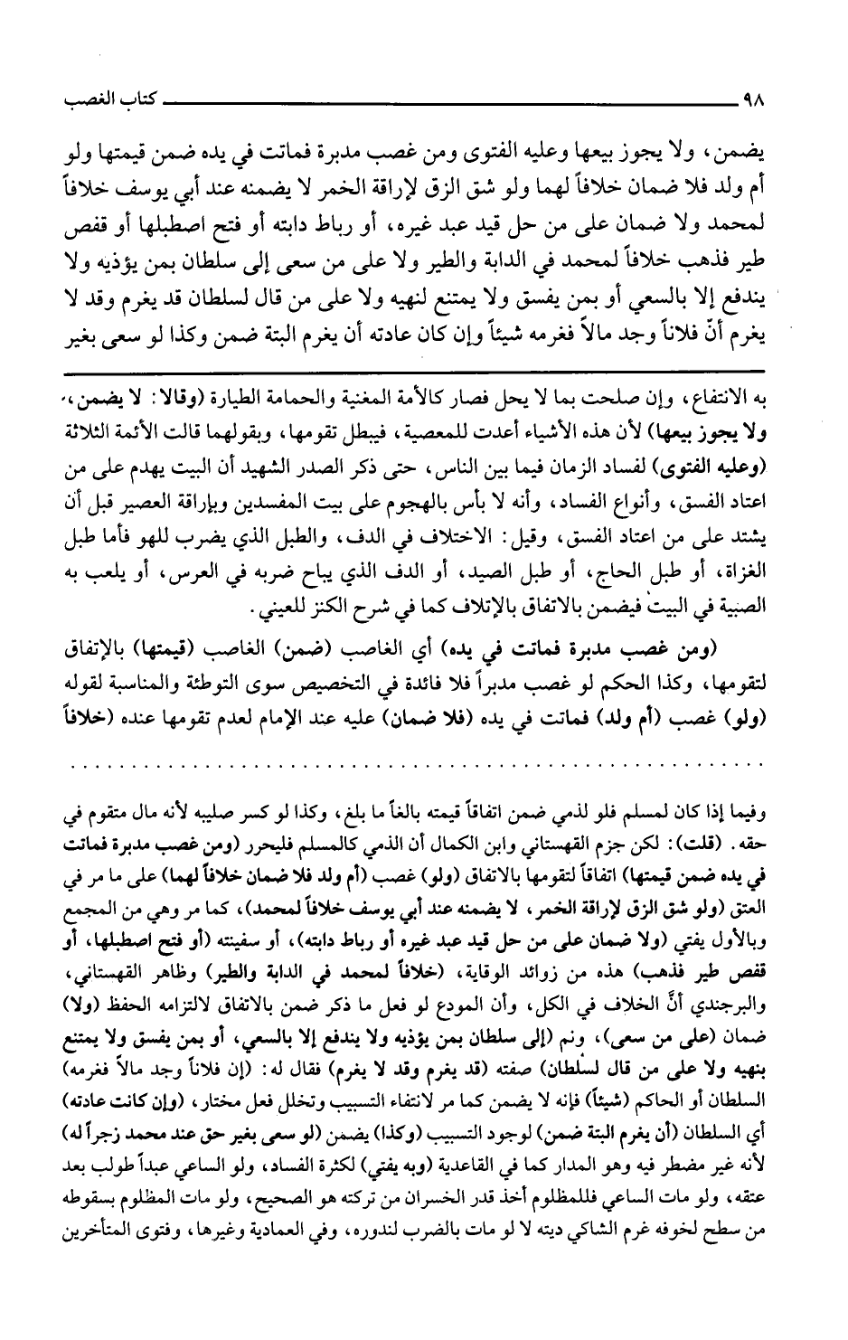 ومن غصب مدبرة فماتت في يده أي الغاصب ضمن الغاصب قيمتها بالاتفاق لتقومها وكذا الحكم لو غصب مدبرا فلا فائدة في التخصيص سوى التوطئة والمناسبة لقوله ولو غصب أم ولد فماتت في يده فلا ضمان عليه عند الإمام لعدم تقومها عنده خلافا