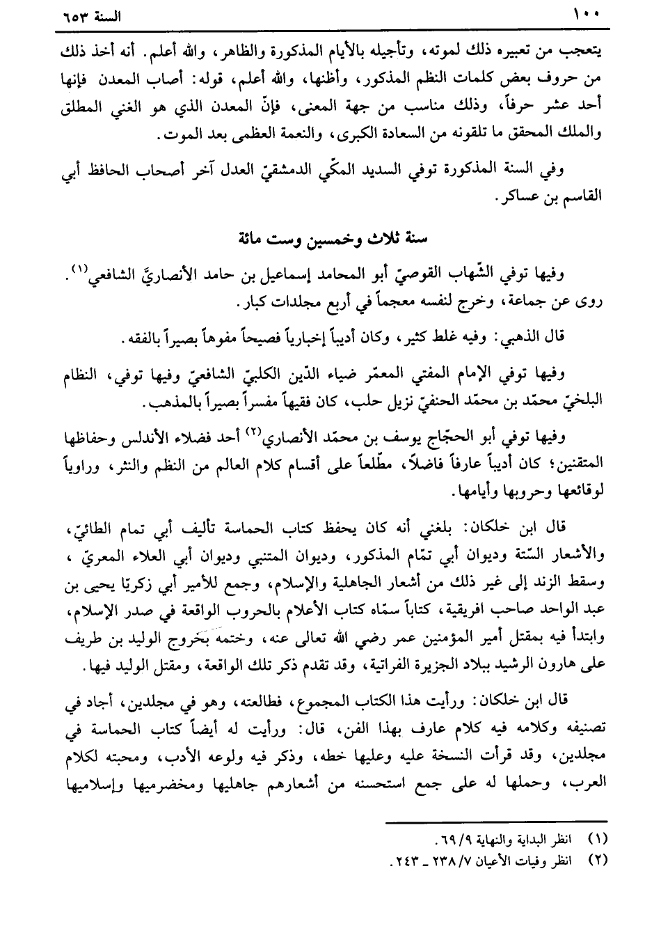 وفيها توفي الإمام المفتي المعمر ضياء الذين الكلبي الشافعي وفيها توفي، النظام البلخي محمد بن محمد الحنفي نزيل حلب، كان فقيهًا مفسراً بصيرًا بالمذهب.