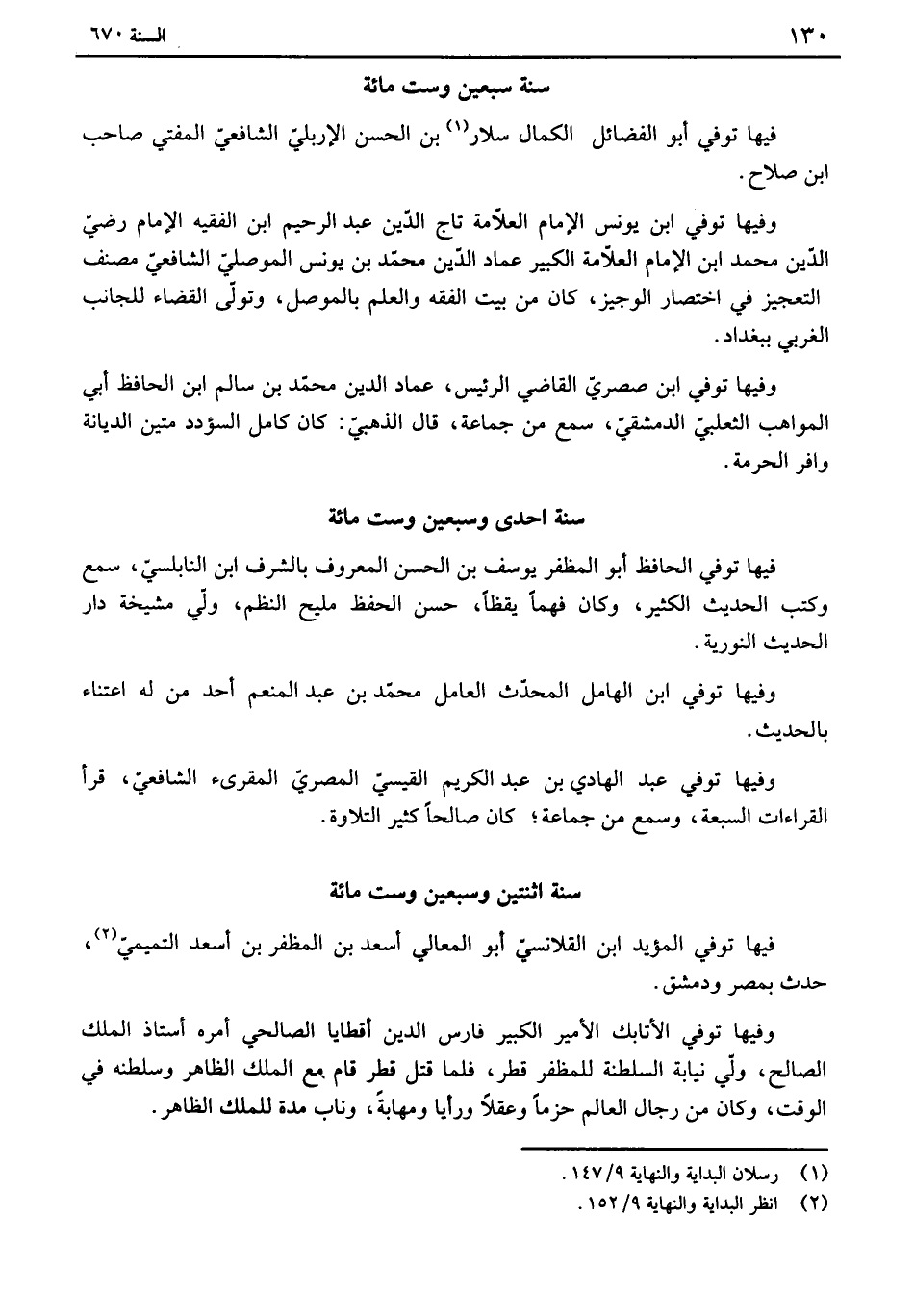 فيها توفي أبو الفضائل الكمال سلار بن الحسن الإربلي الشافعي المفتي صاحب ابن صلاح.