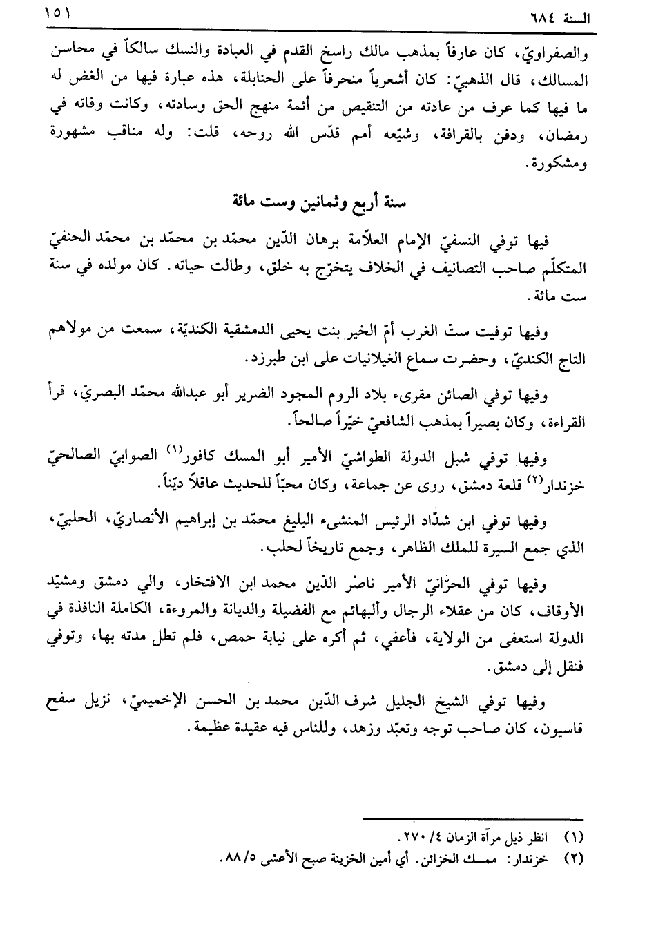 فيها توفي النسفي الإمام العلامة برهان الدين محمد بن محمد بن محمد الحنفي المتكلم صاحب التصانيف في الخلاف يتخرج به خلق، وطالت حياته. كان مولده في ست ست مائة.