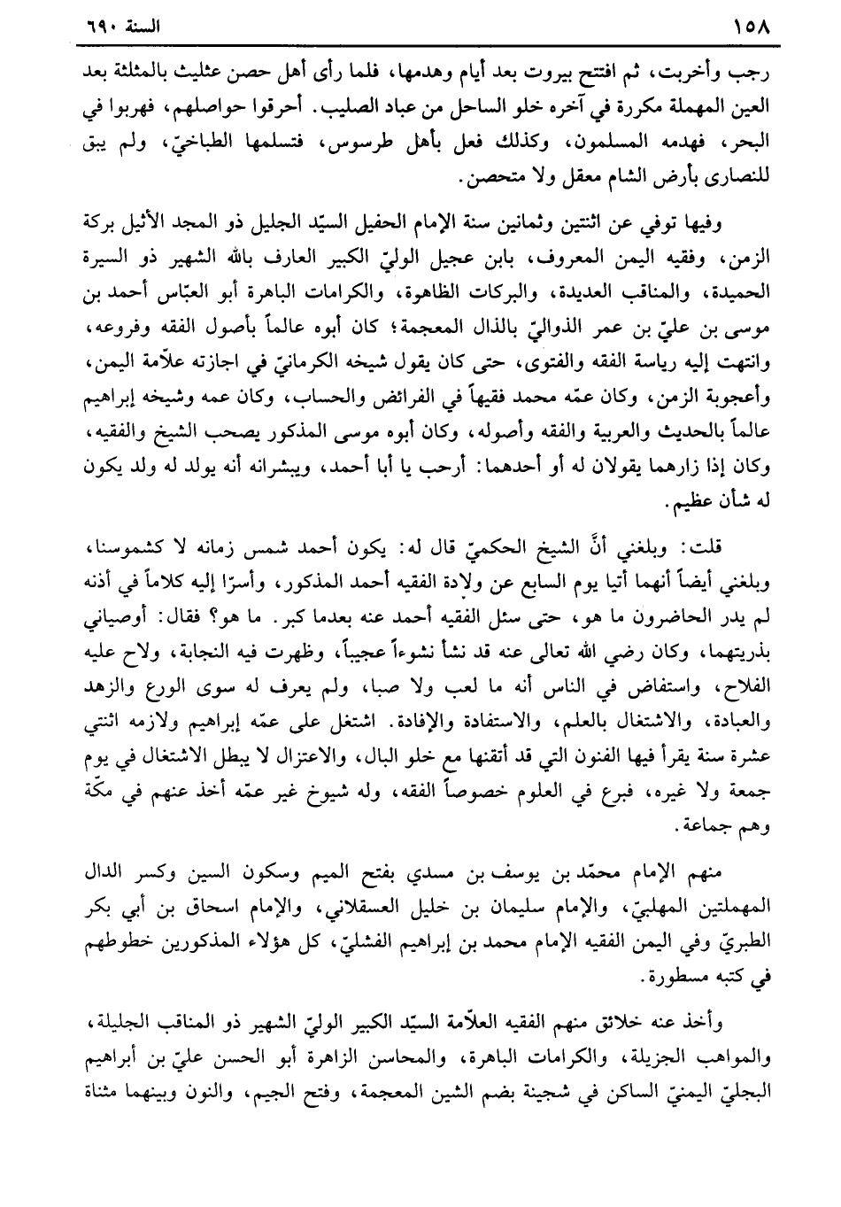 منهم الإمام محمد بن يوسف بن مسدي بفتح الميم وسكون السين وكسر الدال المهملتين المهلبي، والإمام سليمان بن خليل العسقلاني، والإمام إسحاق بن أبي بكر طبري وفي اليمن الفقيه الإمام محمد بن إبراهيم الفشلي، كل هؤلاء المذكورين خطوطهم في كتبه مسطورة.