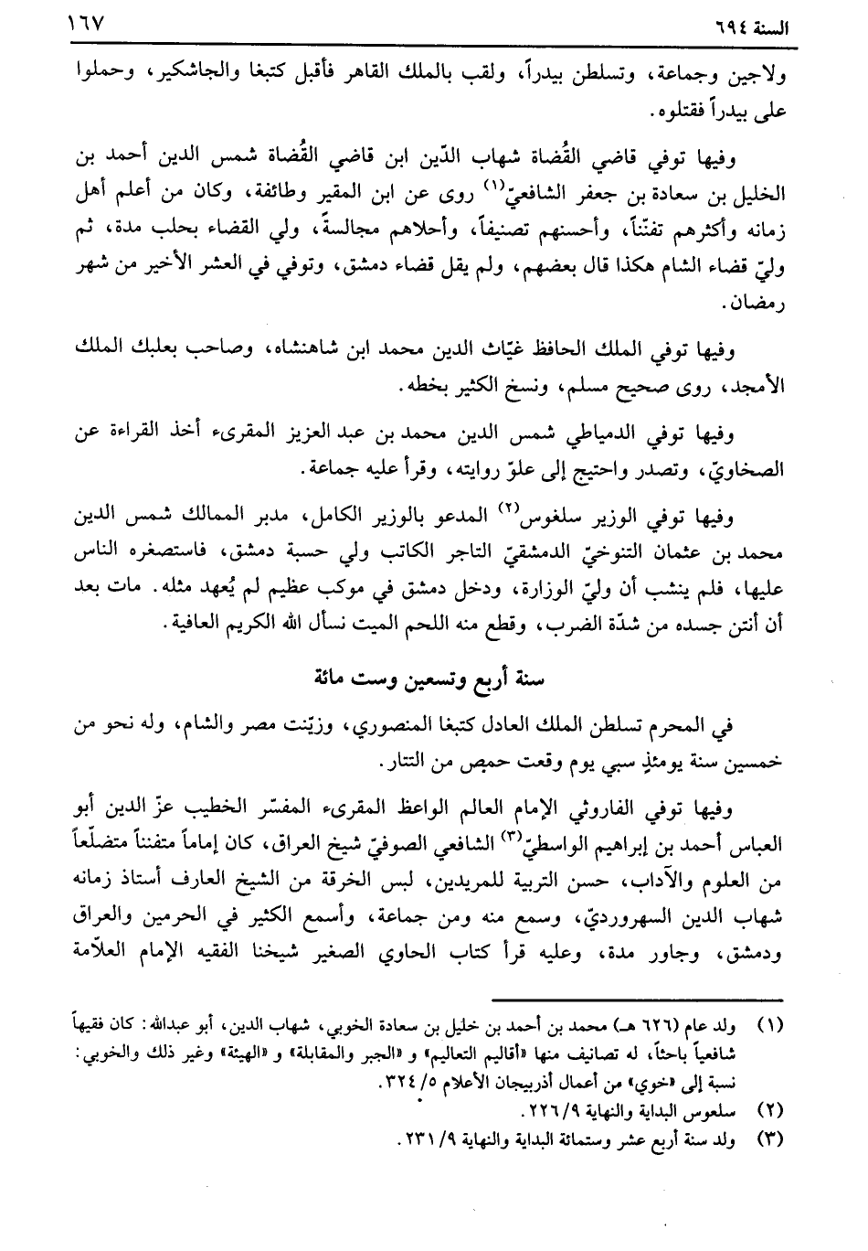 وفيها توفي الفاروثي الإمام العالم الواعظ المقرئ المفسر الخطيب عز الدين أبى العباس أحمد بن إبراهيم الواسطي الشافعي الصوفي شيخ العراق، كان إماماً متفنناً متضلعاً من العلوم والآداب، حسن التربية للمريدين، لبر الخرقة من الشيخ العارف أستاذ زمانه شهاب الدين السهروري، وسمع منه ومن جماعة، وأسمع الكثير في الحرمين والعراق ودمشق، وجاور مدة، وعليه قرأ كتاب الحاوي الصغير شيخنا الفقيه الإمام العلامة