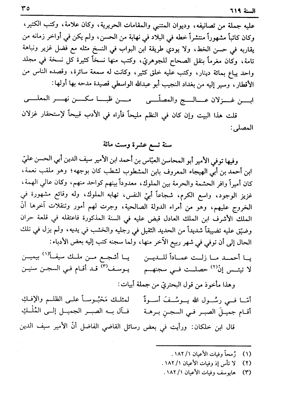 قال ابن خلكان: ورأيت في بعض رسائل القاضي الفاضل أن الأمير سيف الدين