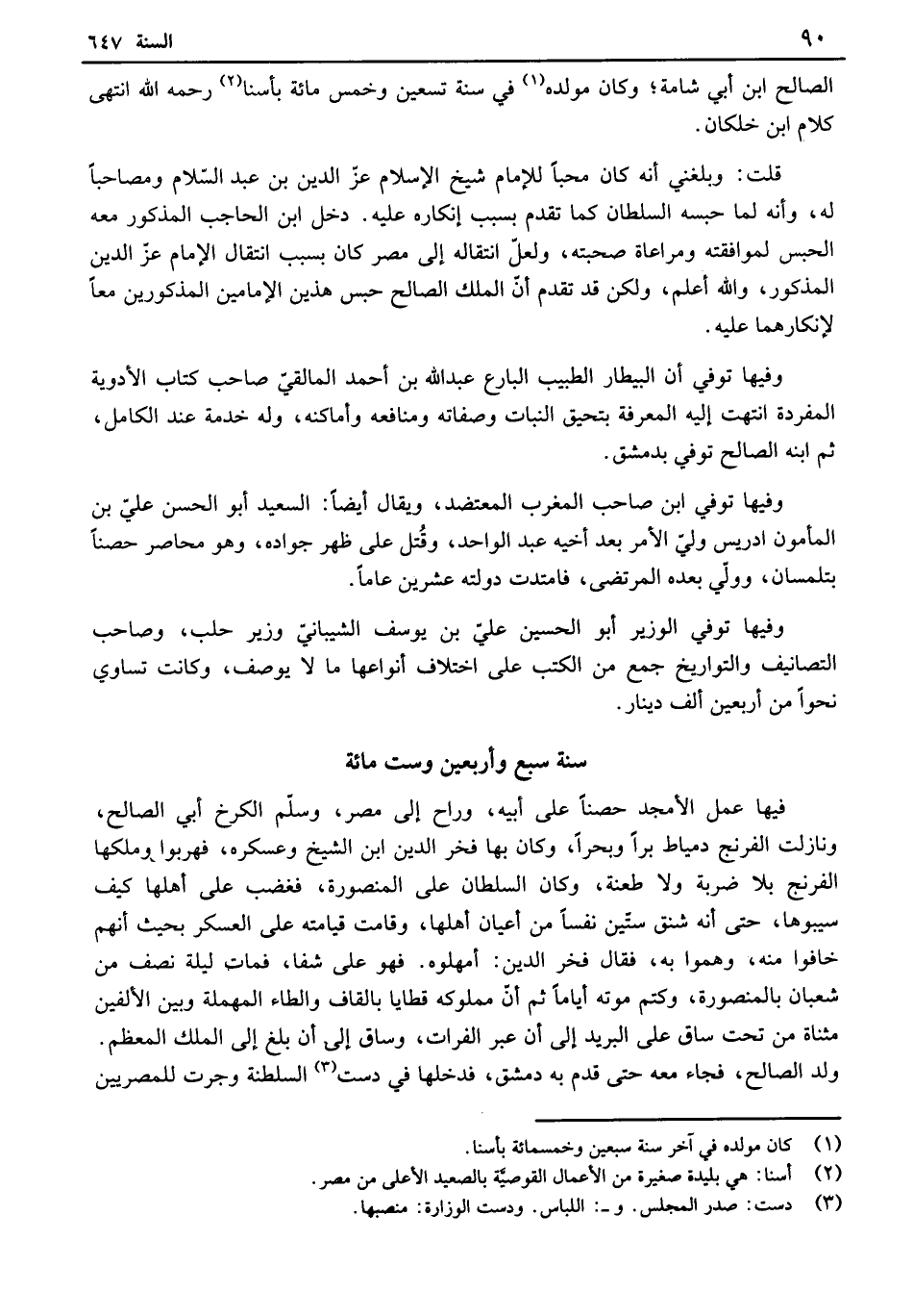 الصالح ابن أبي شامة، وكان مولده في سنة تسعين وخمس مائة بأسنا رحمه الله انتهى كلام ابن خلكان.