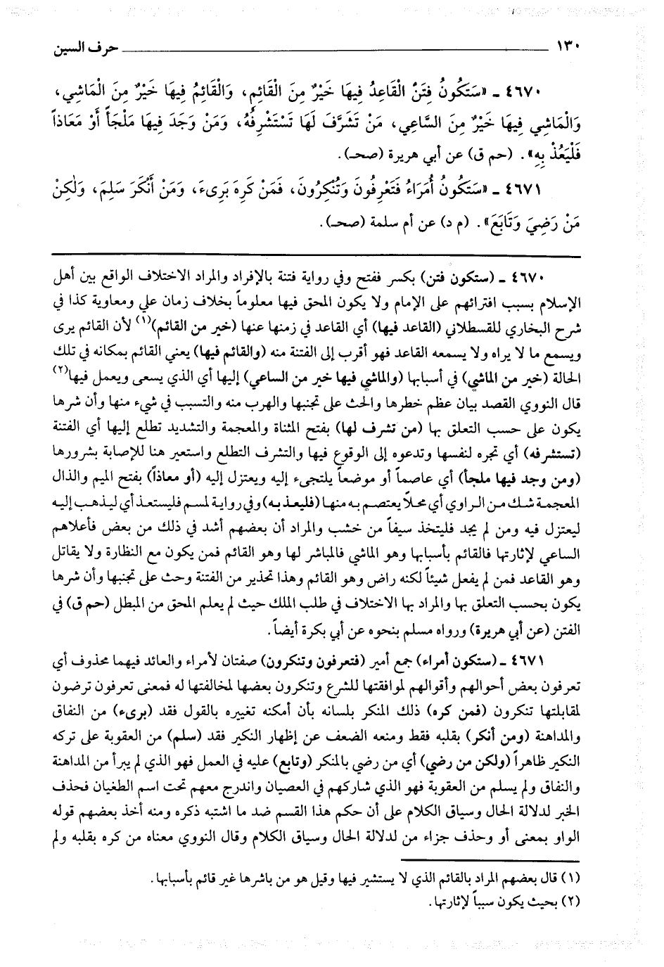 4670 - (ستكون فتن) بكسر ففتح وفي رواية فتنة بالإفراد والمراد الاختلاف الواقع بين أهل