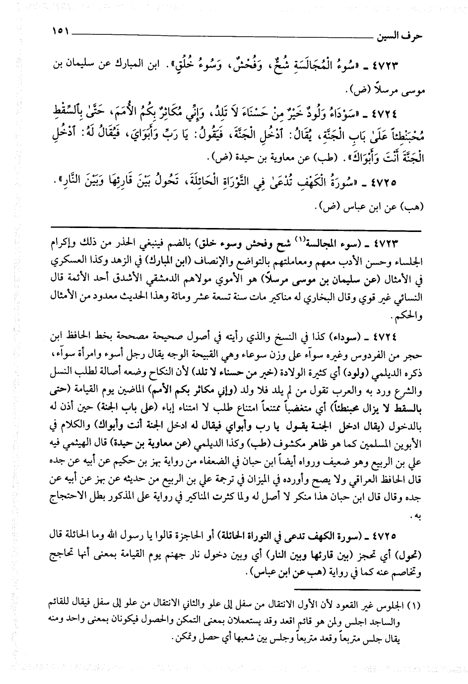 4723 - (سوء المجالسة (1) شح وفحش وسوء خلق) بالضم فينبغي الحذر من ذلك وإكرام الجلساء وحسن الأدب معهم ومعاملتهم بالتواضع والإنصاف.