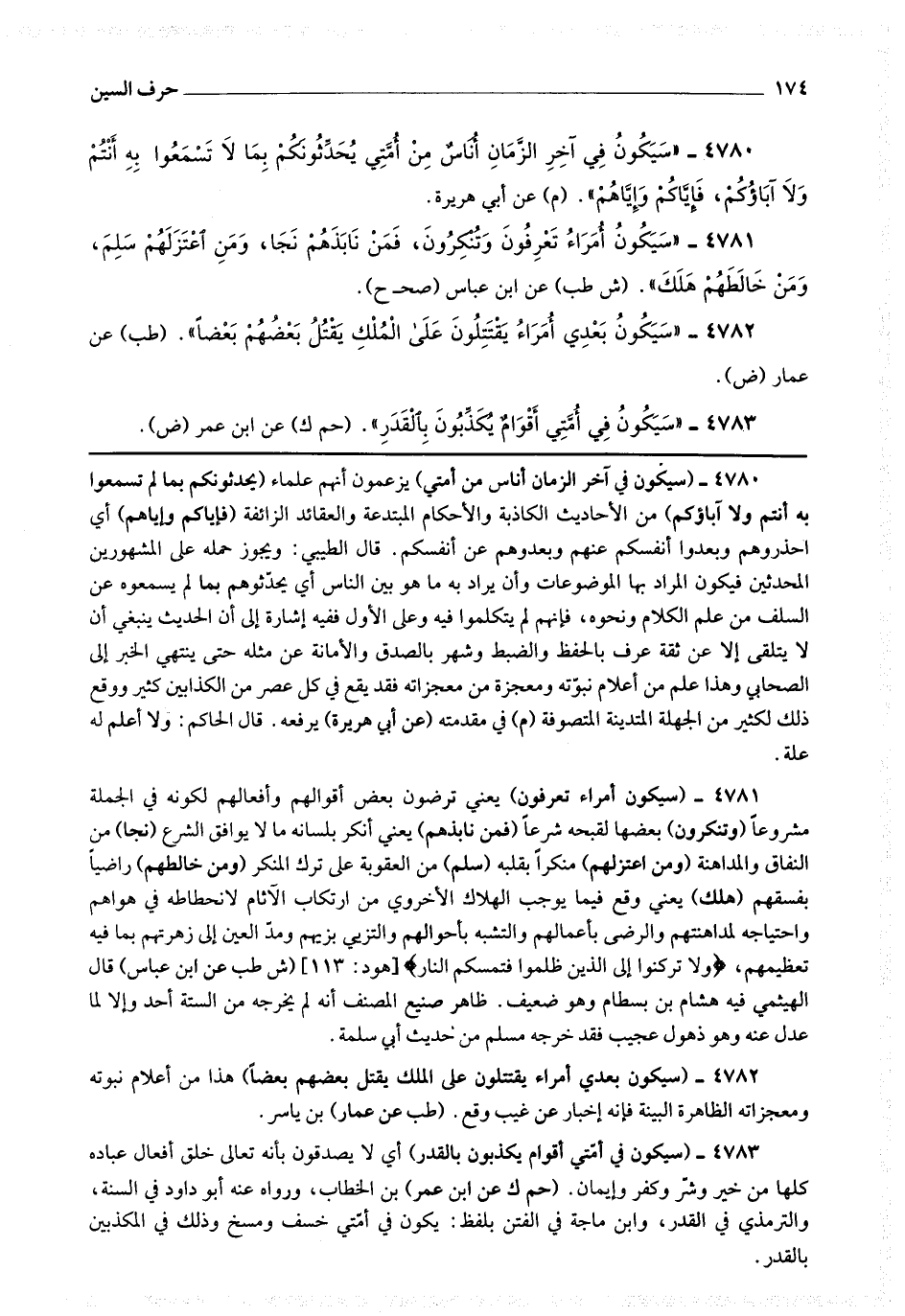 4783 - (سيكون في أمتي أقوام يكذبون بالقدر) أي لا يصدقون بأنه تعالى خلق أفعال عباده كلها من خير وشر وكفر وإيمان.