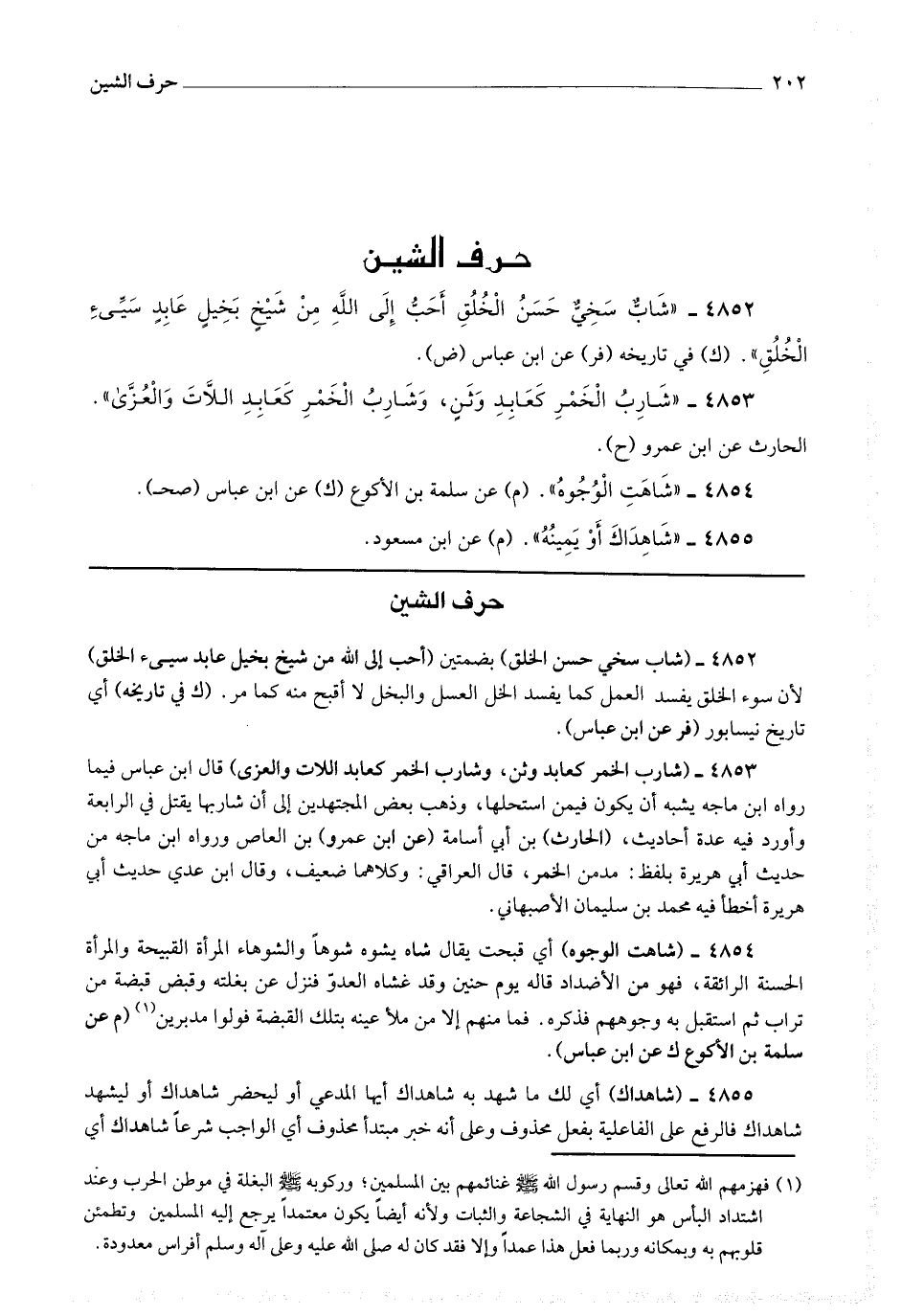 4853 - (شارب الخمر كعابد وثن، وشارب الخمر كعابد اللات والعزى) قال ابن عباس فيما رواه ابن ماجه: يشبه أن يكون فيمن استحلها، وذهب بعض المجتهدين إلى أن شاربها يقتل في الرابعة وأورد فيه عدة أحاديث.