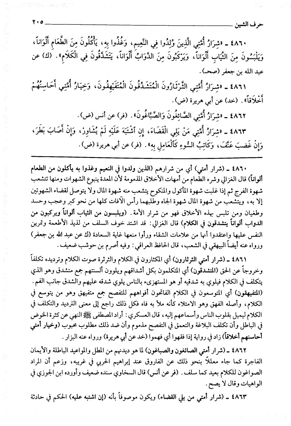4862 - (شرار أمتي الصائغون والصباغون) لما هو ديدنهم من المطل والمواعيد الباطلة والأيمان الفاجرة كما جاء معللا بنحو ذلك عن الفاروق عند إبراهيم الحربي في غريبه وزعم أن المراد الصواغون للكلام بعيد كما سلف.