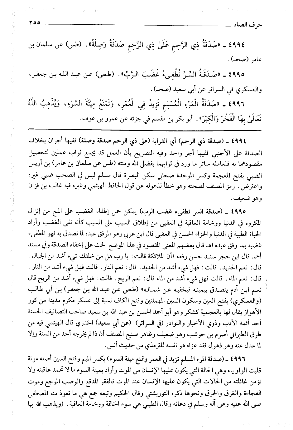 4995 - (صدقة السر تطفئ غضب الرب) يمكن حمل إطفاء الغضب على المنع من إنزال المكروه في الدنيا ووخامة العاقبة في العقبى من إطلاق السبب على المسبب كأنه نفى الغضب وأراد الحياة الطيبة في الدنيا والجزاء الحسن في العقبى قال ابن عربي : وهو الموفق عبده لما تصدق به فهو المطفئ غضبه بما وفق عبده اه.