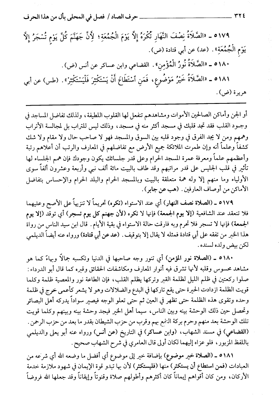 5180 - (الصلاة نور المؤمن) أي تنور وجه صاحبها في الدنيا وتكسبه جمالا وبهاءا كما هو مشاهد محسوس ، و [ تنور ] قلبه لأنها تشرق فيه أنوار المعارف ومكاشفات الحقائق ، و [ تنور ] قبره كما قال أبو الدرداء صلوا ركعتين في ظلم الليل لظلمة القبر (1) وتركها يظلم القلب فإن الطاعة نور والمعصية ظلمة وكلما قويت الظلمة ازدادت الحيرة حتى يقع تاركها في البدع والضلالات وهو لا يشعر كأعمى خرج في ظلمة وحده وتقوى هذه الظلمة حتى تظهر في العين ثم حتى تعلو الوجه فيصير سوادا يدركه أهل البصائر وتحصل حين ذلك الوحشة بينه وبين الناس سيما أهل الخير فيجد وحشة بينه وبينهم وكلما قويت تلك الوحشة بعد منهم وحرم بركة النفع بهم وقرب من حزب الشيطان بقدر ما بعد من حزب الرحمن.