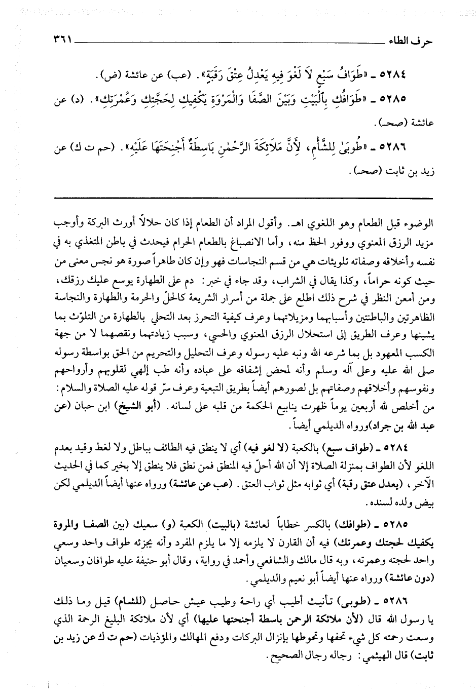 5286 - (طوبى) تأنيث أطيب أي راحة وطيب عيش حاصل (للشام) قيل : وما ذلك