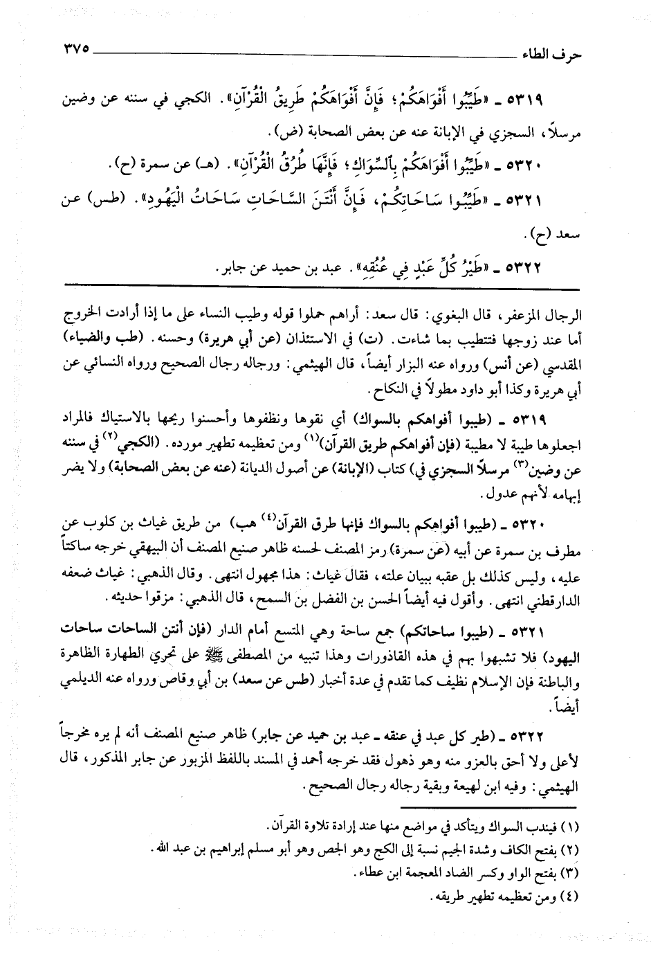 5320 - (طيبوا أفواهكم بالسواك فإنها طرق القرآن (1).