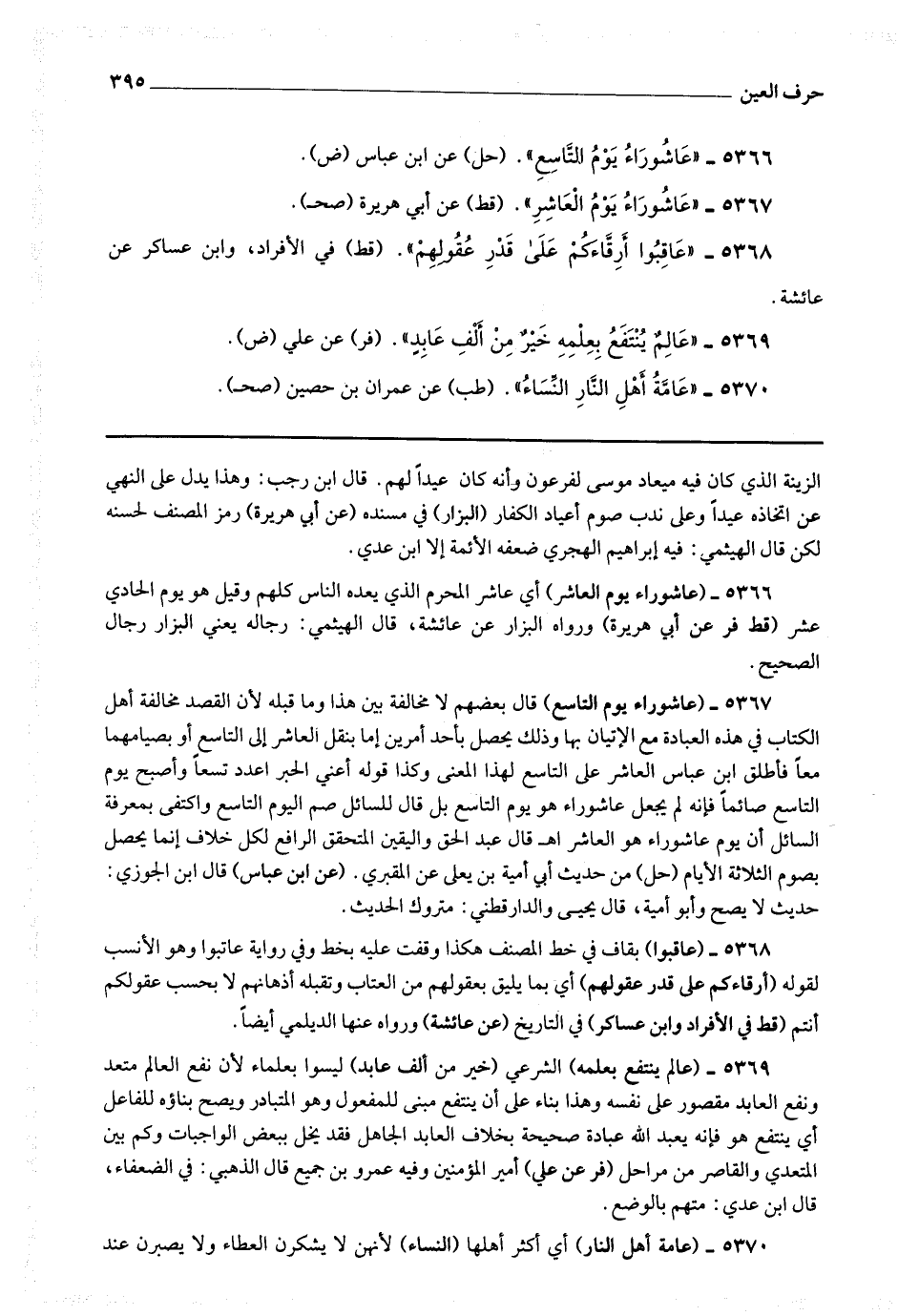 5366 - (عاشوراء يوم العاشر) أي عاشر المحرم الذي يعده الناس كلهم وقيل : هو يوم الحادي عشر.