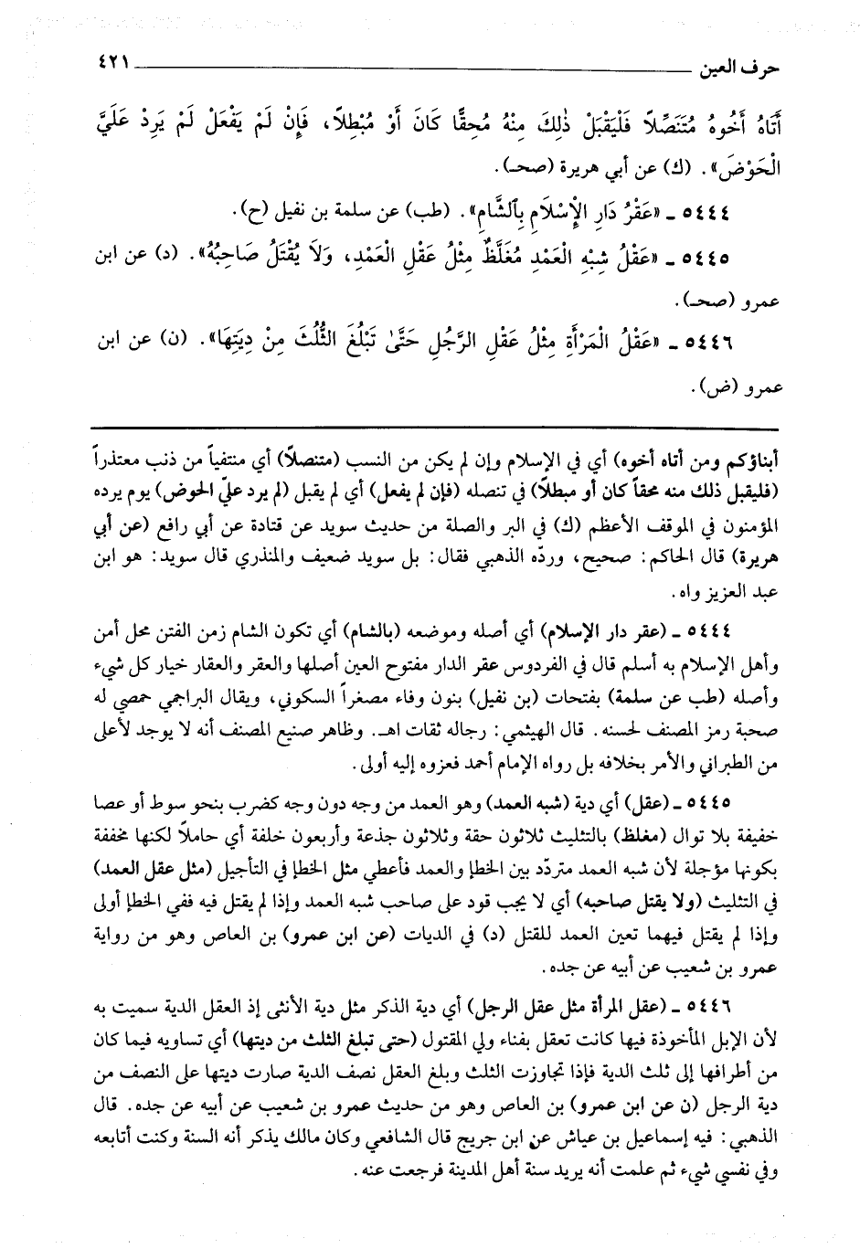 (د) في الديات (عن ابن عمرو) بن العاص وهو من رواية عمرو بن شعيب عن أبيه عن جده.