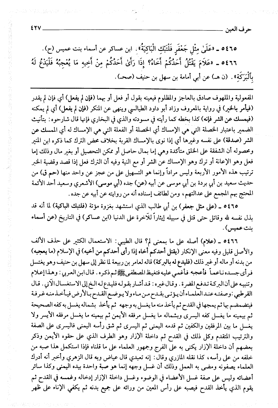 5466 - (علام) أصله على ما بمعنى لم ؟ قال الطيبي : الاستعمال الكثير على حذف الألف والأصل قليل وفيه معنى الإنكار (يقتل أحدكم أخاه) إذا (رأى أحدكم من أخيه) في الإسلام (ما يعجبه) من بدنه أو ماله أو غير ذلك (فليدع له بالبركة) قاله لعامر بن ربيعة لما نظر إلى سهل بن حنيف وهو يغتسل فرأى جسده ناعما فأعجبه فأغمى عليه فتغيظ المصطفى صلى الله عليه وسلم عليه ثم ذكره.