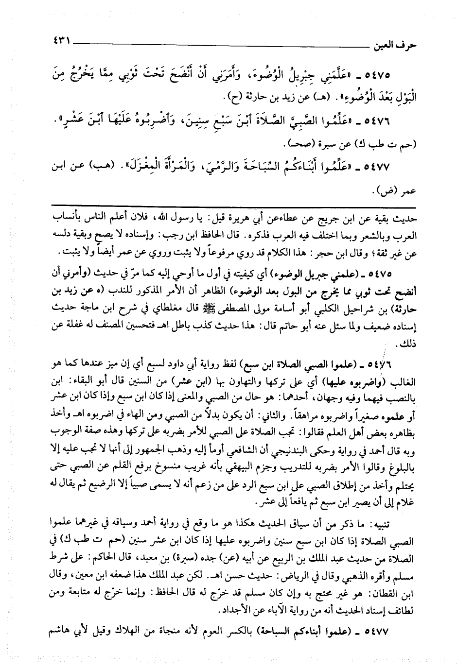 5477 - (علموا أبناءكم السباحة) بالكسر العوم لأنه منجاة من الهلاك وقيل لأبي هاشم