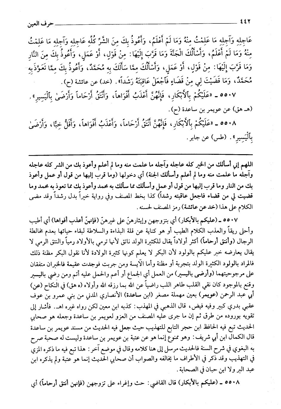 5508 - (عليكم بالأبكار) قال القاضي : حث وإغراء على تزوجهن (فإنهن أنتق أرحاما) أي