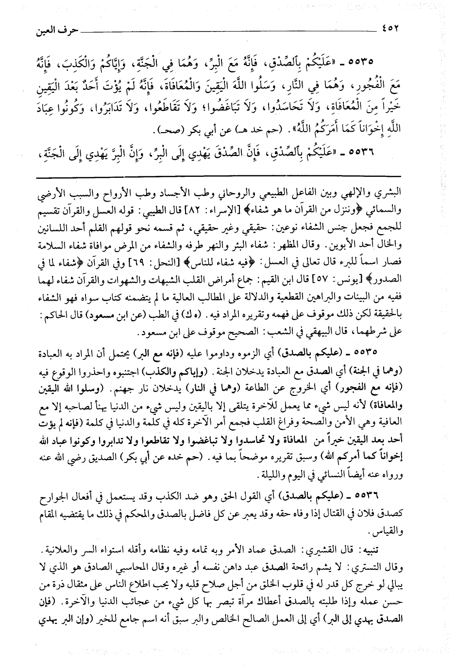 5535 - (عليكم بالصدق) أي الزموه وداوموا عليه (فإنه مع البر) يحتمل أن المراد به العبادة