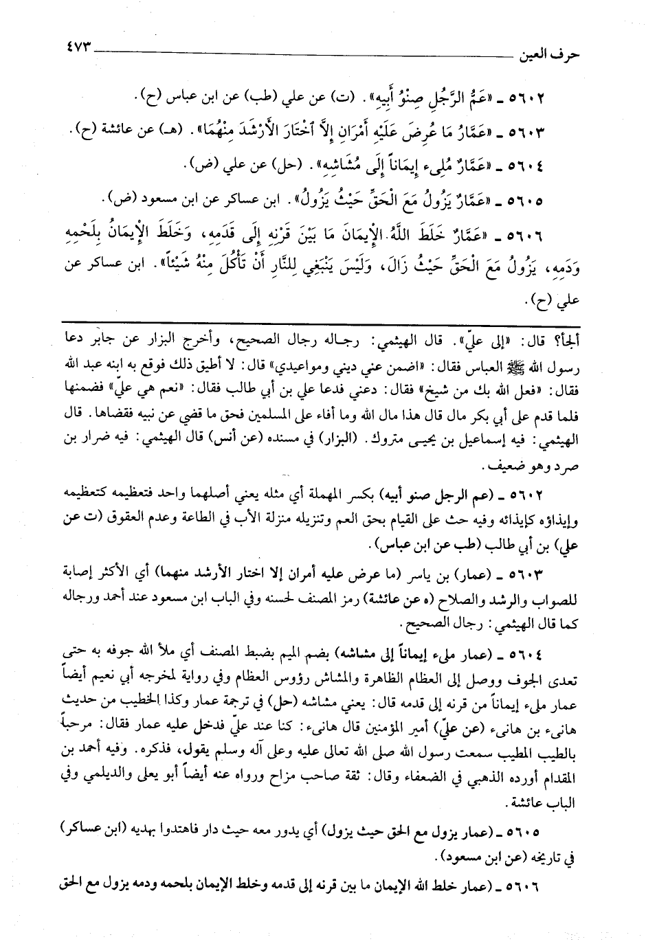 5605 - (عمار يزول مع الحق حيث يزول) أي يدور معه حيث دار فاهتدوا بهديه.