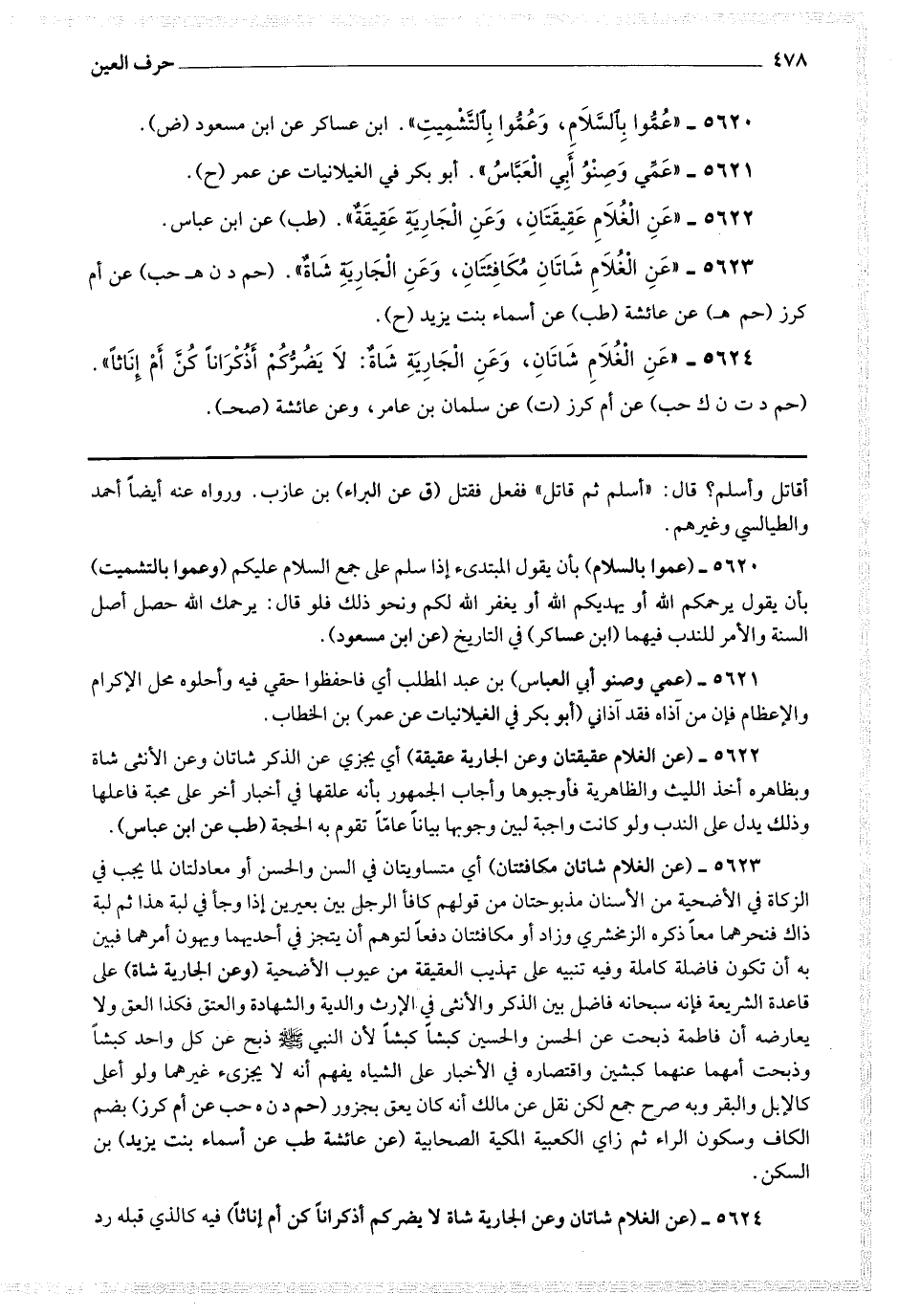5624 - (عن الغلام شاتان وعن الجارية شاة لا يضركم ذكرانا كن أم إناثا) فيه كالذي قبله رد