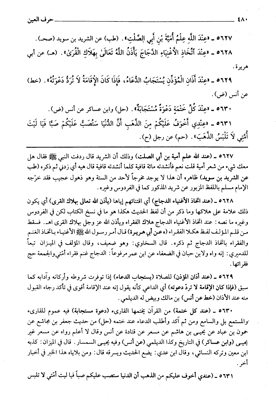 5630 - (عند كل ختمة) من القرآن يختمها القارئ (دعوة مستجابة) فيه عموم للقارئ والمستمع بل والسامع ومن ثم آكد واطلب الدعاء عند ختمه.