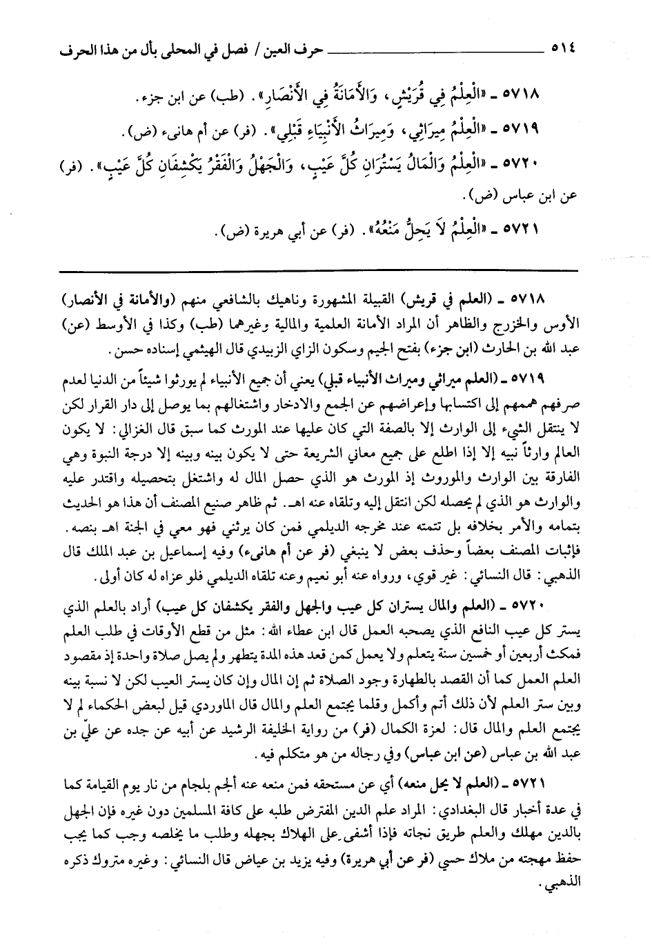 5719 - (العلم ميراثي وميراث الأنبياء قبلي) يعني أن جميع الأنبياء لم يورثوا شيئا من الدنيا لعدم